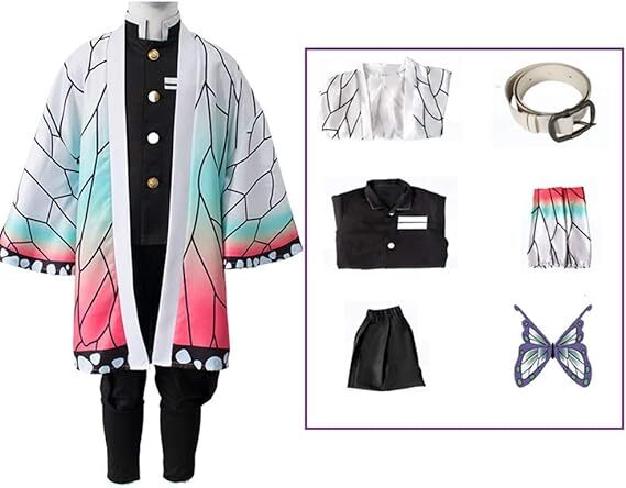 ★新品未使用★ ●新品・未使用品になります。 胡蝶しのぶ コスプレ (こちょうしのぶ) 子供用 110 サイズ セット内容:羽織、上着、ズボン、ベルト 足カバー、髪飾り