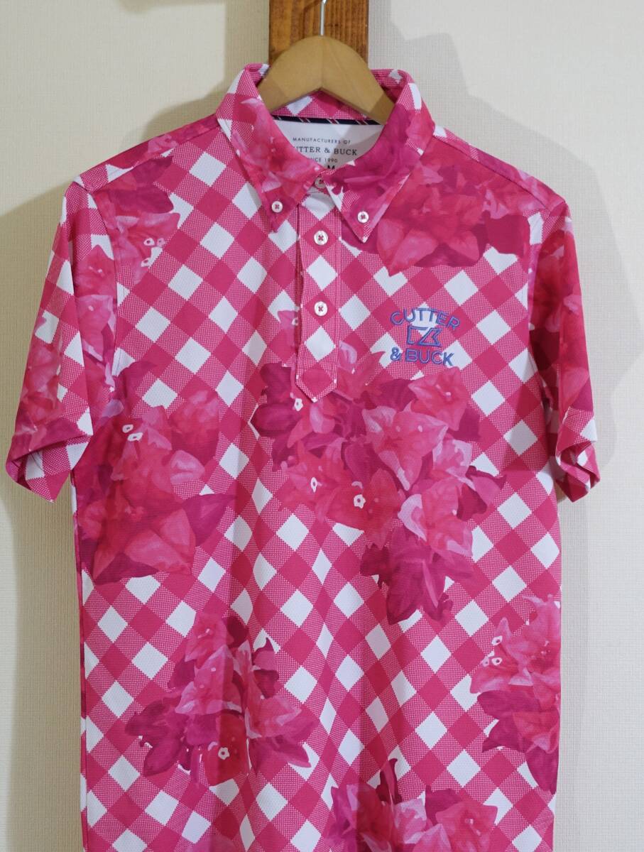 | CUTTER & BUCK/カッターアンドバック◆シャツ ボタンダウン CBM2722 チェック×ハイビスカス 速乾 GOLF ゴルフ デサント | |