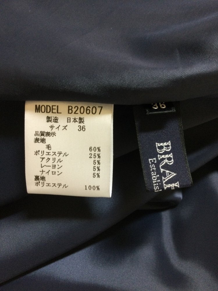| 管理番号:10^133619 ブラーミン ネイビーウール フレアスカート 表示サイズ:36 実寸(参考)