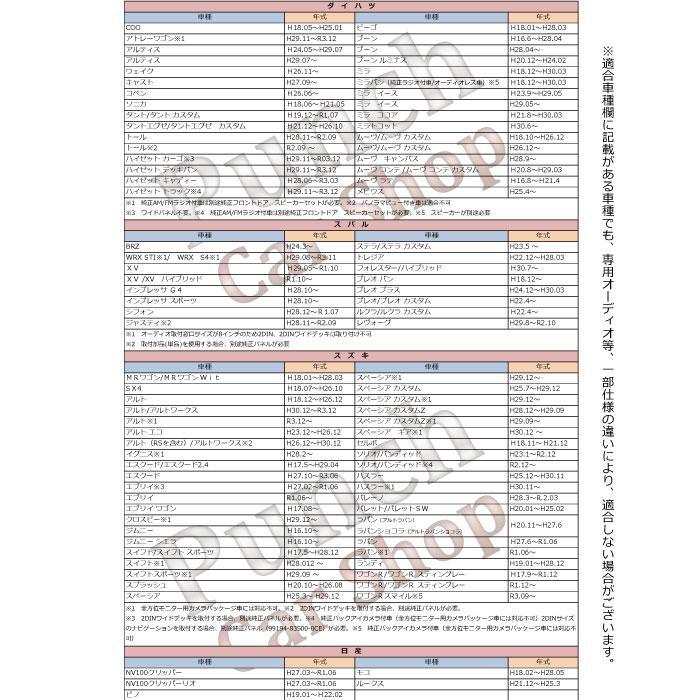| 当商品をご覧いただき、誠にありがとうございます。 【商品詳細】 ■オーディオハーネス 車速5P としてお使い頂けます。 ■社外オーディオ、ナビを取り付ける際に車速・リバース・パーキングの5極コネクタを配線に変換するキットとなります。 ■車速5極コネクタにカプラーONするだけで社外品の車速・リバース・パーキングを簡単に接続可能な状態にできます。 ■ディーラーナビ付車およびオーディオレス仕様の車両に対応しております。 ■汎用品ではありますが粗悪な海外製ではありません。自社で検品をおこない発送いたします。 ■逆カプラーではありません。 ■ISO認証取得工場にて製造・検査を行い厳しい検査基準をクリアした商品となっております。 ※こちらに記載がある車種でも、専用オーディオ等、一部仕様の違いにより、適合しない場合がございます。予めご了承のうえ、ご参照下さいませ。 ※必ず現車でコネクター形状をご確認頂きますようお願い致します。 ※未使用の配線は必ず絶縁処理お願いします。 ご購入前に、店舗情報の販売者情報をご確認ください 【適合一覧】 ◆トヨタ 86/H24.04~R3.10 シエンタ/H27.07~ GR86※1/R3.10~ シエンタハイブリッド/H27.07~ bB/H17.12~H28.08 ジャパンタクシー/H29.10~ C-HR/H28.12~R1.10 ディスプレイオーディオレス車のみ/R3.02~ スペイド/H24.07~ タンク/H28.11~R2.09 FJクルーザー/H22.12~H30.01 ナディア/H10.08~H15.08 IQ/H20.10~H28.03 ノア/H19.06~R4.01 RAV4/H12.05~H28.08 ノアハイブリッド/H26.01~R04.01 RAV4ディスプレイオーディオレス車のみ/R3.08~ ハイエース(バン)/H16.08~H25.12 SAI/H25.09~H29.11 ハイエース(バン)/H25.12~ アイシス/H16.09~H29.12 ハイエース(ワゴン)/H16.08~H25.12 アクア/H23.12~R3.07 ハイエース(ワゴン)/H25.12~ アベンシス/H23.09 ~H30.04 ハイエースコミューター/H16.08~H25.12 アリオン/H19.6~H28.06 ハイエースコミューター/H25.12~ アリオン/H28.06~ ハイラックスサーフ/H14.11~H21.07 アルファード/H14.5~R2.01 パッソ/H16.06~H28.04 アルファードハイブリッド/H23.11~R2.01 パッソ/H28.04~ イスト/H19.07~H28.05 パッソセッテ/H20.12~H24.02 イプサム/H13.5~H21.12 ハリアー/H25.12~R02.06 ヴァンガード/H19.9~H25.11 ピクシスエポック/H24.05~H29.05 ウィッシュ/H15.1~H29.10 ピクシスエポック/H29.05~ ヴィッツ/H14.03~H22.12 ピクシスジョイ/H28.08~ ヴィッツ/ヴィッツハイブリッド/H29.1~ ピクシススペース/H23.09~H29.01 ヴェルファイア/H20.5~R2.01 ピクシスメガ/H27.07~ ヴェルファイアハイブリッド/H23.11~R2.01 プリウス/H21.05~H27.12 ヴォクシー/H19.06~R4.01 プリウス※2/H27.12~R3.06 ヴォクシーハイブリッド/H26.1~R4.01 プリウス※2/R3.06~ エスクァイア/エスクァイアハイブリッド/H26.10~ プリウスPHV/H24.01~H29.02 エスティマ/H18.01~R1.10 プリウスPHV※2/H29.02~ オーリス/H18.10~H30.03 プリウスα/H23.05~ オーリスハイブリッド/H28.04~H30.03 ブレイド/H18.12~H24.04 ガイア/H10.05~H16.07 プレミオ/H19.06~H28.06 カムリ/H18.1~H23.09 プレミオ/H28.06~ カムリハイブリッド/H23.9~R1.09 ベルタ/H17.11~24.06 カルディナ/H14.5~H19.05 ポルテ/H16.07~H24.07 カローラアクシオ/H18.10~ ポルテ/H24.07~ マークX※スーパーライブサウンドシステム車は適合不可/H16.11~H18.10 カローラスポーツ/H30.06~R1.09 マークX/H18.10~R01.12 カローラスパシオ/H13.05~H19.06 マークXジオ/H19.09~H25.11 カローラランクス/アレックス/H13.01~H18.09 ヤリス/GRヤリス※1(法人向けオーディオレス車)/R2.04~ カローラルミオン/H19.10~H28.01 ラウム/H15.05~H23.10 カローラフィールダー/H18.10~H27.04 ラクティス/H17.10~H28.09 カローラフィールダー/H27.04~ ラッシュ/H18.1~H28.03 カローラフィールダーハイブリッド/H25.8~H27.04 ランドクルーザー/H19.08~H27.08 カローラフィールダーハイブリッド/H27.04~ ランドクルーザー/H27.08~ クラウンアスリート/クラウンロイヤルサルーン/H24.12~H30.06 ランドクルーザープラド/H14.10~H25.09 クルーガー/H12.11~H19.05 ランドクルーザープラド/H25.09~ サクシード(ワゴン/バン)/H14.7~H30.12 ルーミー/H28.11~R2.09 サクシード(ワゴン/バン)/H14.7~H30.12 レジアスエース/H16.08~H25.12 サクシード(ワゴン/バン)/H30.12~ レジアスエース/H25.12~ シエンタ/H15.09~H27.07 ※12DINワイドモデル専用スペーサーが必要 ※2純正パネルが9インチ対応の為、2DINワイド、2DINナビゲーション取付には純正スペーサーが必要です。 ◆ダイハツ COO/H18.05~H25.01 ビーゴ/H18.01~H28.03 アトレーワゴン※1/H29.11~R3.12 ブーン/H16.6~H28.04 アルティス/H24.05~H29.07 ブーン/H28.04~ アルティス/H29.07~ ブーンルミナス/H20.12~H24.02 ウェイク/H26.11~ ミラ/H18.12~H30.03 キャスト/H27.09~ ミラバン(純正ラジオ付車/オーディオレス車)※5/H18.12~H30.03 コペン/H26.06~ ミライース/H23.9~H29.05 ソニカ/H18.06~H21.05 ミライース/H29.05~ タント/タントカスタム/H19.12~R1.07 ミラココア/H21.8~H30.03 タントエグゼ/タントエグゼカスタム/H21.12~H26.10 ミラトコット/H30.6~ トール/H28.11~R2.09 ムーヴ/ムーヴカスタム/H18.10~H26.12 トール※2/R2.09 ~ ムーヴ/ムーヴカスタム/H26.12~ ハイゼットカーゴ※3/H29.11~R03.12 ムーヴキャンバス/H28.9~ ハイゼットデッキバン/H29.11~R3.12 ムーヴコンテ/ムーヴコンテカスタム/H20.8~H29.03 ハイゼットキャディー/H28.06~R3.03 ムーヴラテ/H16.8~H21.4 ハイゼ