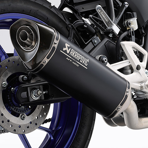 サイレンサーは高品質なチタン製で専用のアクラポビッチ社ロゴとMT-125のレーザー刻印入。