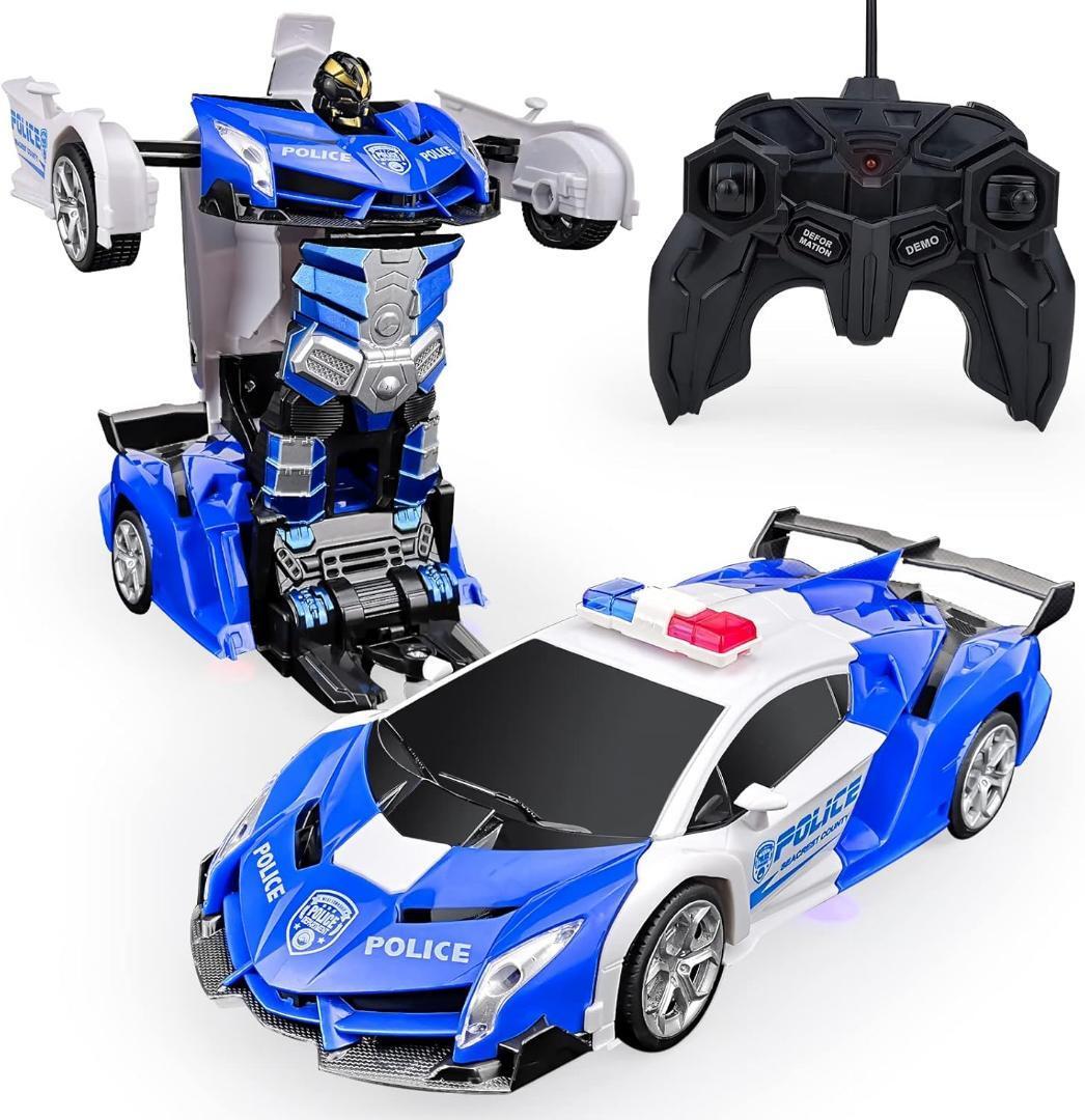 ラジコンカー 車おもちゃ スタントカー 警察車 充電式 リモコン RCカー モデルカー ロボットに変身でき 2.4GHz LED搭載 360度回転 こども向け 子供おもちゃ 誕生日 クリスマス プレゼント (青白)です!