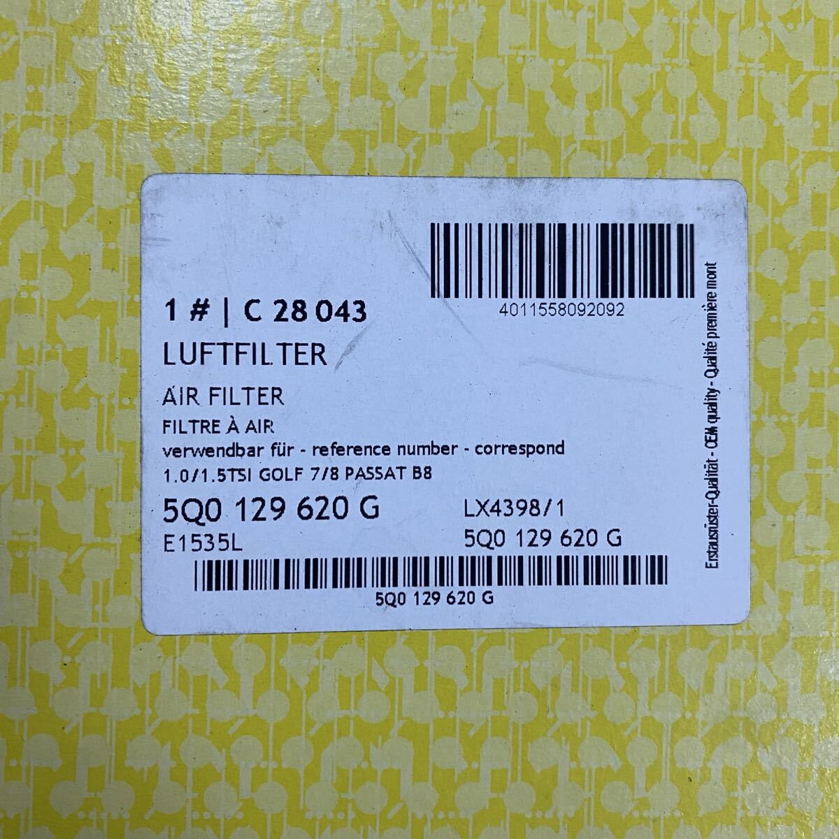 未使用品 MANN AIR FILTER 5Q0 129 620 G エアフィルター ゴルフ フィルター SHSH0501-A4| 出价者 | 信用 | 价格 | 时间 |