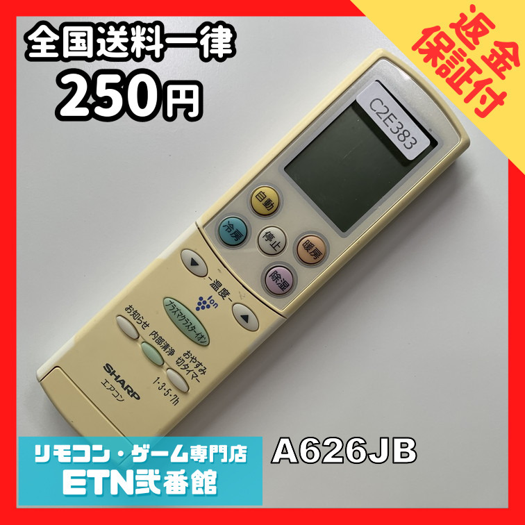 C2E383 【送料250円】エアコン リモコン / SHARP シャープ A626JB 冷房 暖房 動作確認済み★即発送★