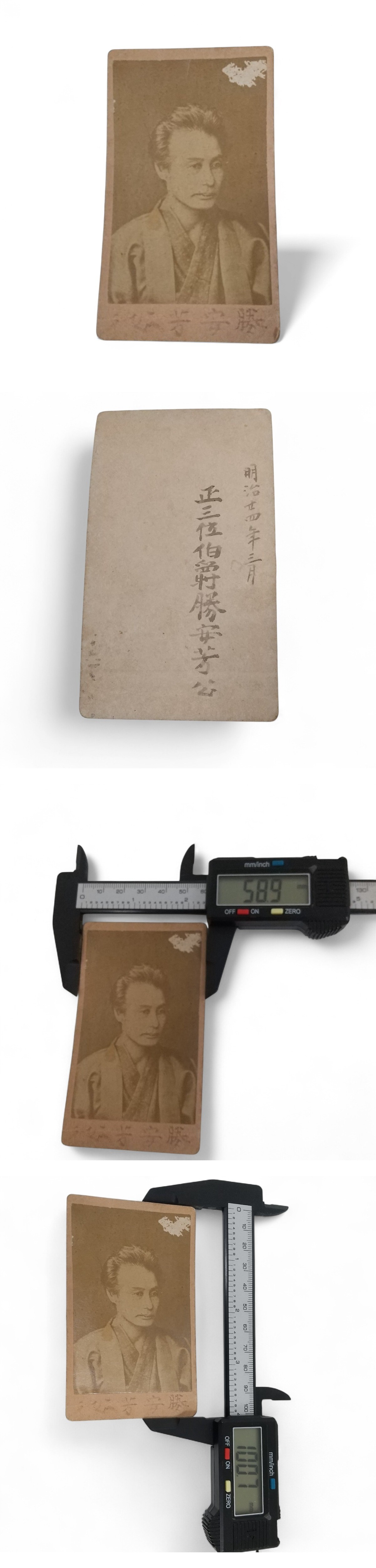 ※必ず最後までお読みください。 Please be sure to read to the end. 一定要到最后※ | 商品概要 | 数あるオークションの中からこちらの商品をご覧頂きまして誠にありがとうございます! ※商品説明と注意事項を必ず全てお読み頂いた後にご入札下さい※ 引き続き 安心できる気持ちの良いお取引を心掛けてまいりますのでどうぞ 宜しくお願い致します! 色んなジャンルの商品を多数出品しておりますので、 こちらをクリックしてご覧ください!! ◎激レア◎明治24年3月 手札型鶏卵古写真 正三位伯爵 勝安芳(勝海舟) 即発送 ※最下部にも写真掲載中なので必ずご覧下さい。 【商品概要】 勝安芳(勝海舟) 文政6年1月30日~明治32年1月19日 (1823~1899) 東京生まれ。幕臣、政治家。長崎海軍伝習所に学ぶ。蘭学、西洋兵学を修得し、万延元年(1860)咸臨丸艦長として渡米。文久2年(1862)軍艦奉行並となる。元治元年(1864)軍艦奉行に就任、神戸に海軍操練所を開き、幕臣のほか坂本竜馬ら諸藩の学生、志士を教育。戊辰戦争では西郷隆盛を説得し、江戸城の無血開城に成功。新政府で、海軍大輔、参議兼海軍卿、元老院議官等を歴任。のち枢密顧問官となる。 明治21年(1888年)10月、正三位に昇叙。 外形寸法:約58.9x100.7mm 【状 態】 写真をよくご確認お願い致します。外装ランク:(--) 【詳細・備考】 写真に写っているものが全てになります。 また、タイトルや本文と写真が異なる場合は写真を正とします。 保管品なので状態判断には個人差があることを予めご了承の上 写真にてご確認ご判断をお願い致します。 譲り受けたお品で当方は専門店ではないので詳細の質問にはお答えできかねます。 また簡単な検品は行っていますが、譲り受けた商品のため欠品等見落としがある場合がございますので保証等はしかねます。 ※返品不可が入札条件となります。 ※中古現状とは動作未確認のジャンク品になります。 ※通電確認とは電源に繋げてONOFFの確認のみになります。 ※バッテリーや電池は消耗品なので経年劣化がある場合もあることをご了承お願い致します。 ※保管品に関しては未使用でも新品ではございませんので、保管期間による劣化等ある場合もございますので、新品をお求めの方はご入札をお控えください。 ※ジャンク品ではなくても中古品の性質上、配送途中や到着後に万が一不備不良が起きうる場合もございますがも保証はできかねますので、返金返品不可をご了承の上ご入札お願い致します。 ※未開封品に関しては中の状態が不明な為、不具合等ございましたらメーカーとご相談お願い致します。保証対象外とさせて頂きますのでこちらでは対応いたしません。 尚、実際の色とパソコンや携帯の画面を通じた色彩は異なる場合もございますのでお気をつけ下さい。 =外観ランク表記= (N)長期保管/未使用品(新品ではございません) (S)数回程度使用の美品 (A)多少の傷、若干の使用感がありますが程度良好の美品 (B)一般的な使用感あります。 (C)汚れ、使用感を感じるがまだまだ使える品物 (D)汚れ、使用感等が見受けられる難有品 (E)ジャンク品 ※大体の目安としてお考え下さい。 新品に近いものをご希望の方や神経質な方のご入札はご遠慮下さい。 ご入札頂いた時点で本文説明文に了承を頂き、商品にご納得して頂いたと当方で判断させて頂きますので 【ノークレーム・ノーリターンがご入札の条件となります】 また、弊社のオークションでは いろんなジャンルで多数出品しておりますので是非ご覧ください(^_-)-〇 ![]() ▶入札の取り消しは受け付けておりません。 落札後の質問やキャンセルも受け付けておりません。 尚、営業時間が9-18時となっておりますのでオークション終了間際や質問内容によっては返答できない場合がございます。 ジャンク商品に関してはいかなる場合も返品返金の対応はできかねます。 落札後のサイズ違いやイメージ違い等のキャンセル、クレーム、返品等はお受けできませんので予めご了承ください。 ご入札の方につきまして、当方にて評価が著しく悪いと判断した場合は、トラブル防止の観点からご入札を取り消させていただく場合がございますので予めご了承ください。 新規IDの方や、いたずら入札と判断した場合、入札削除させていただく場合がございますので、新規の方は質問欄にて購入意思を示してからのご入札をお願い致します。 ※の障害等で入札が不適切に成立した場合は落札された場合でも削除対象になりますことを予めご了承お願い致します。 取り置きは可能ですが物や金額によってはすぐに決済をお願いする場合がございます。 当方大量の商品を管理している為、複数落札の同梱ご希望の方は、「まとめて取引」の依頼を必ず行ってください。 ◆連絡方法◆ ▶当方連絡事項は全て取引ナビを使用しております。 ご連絡先、ご要望等は必ず「取引ナビ」にご入力お願い致します。※ご入札前の場合はdiamonds100ct@yahoo.co.jpまでお願い致します。 ⇩⇩下記の注意事項を必ずお読み下さい。⇩⇩ |