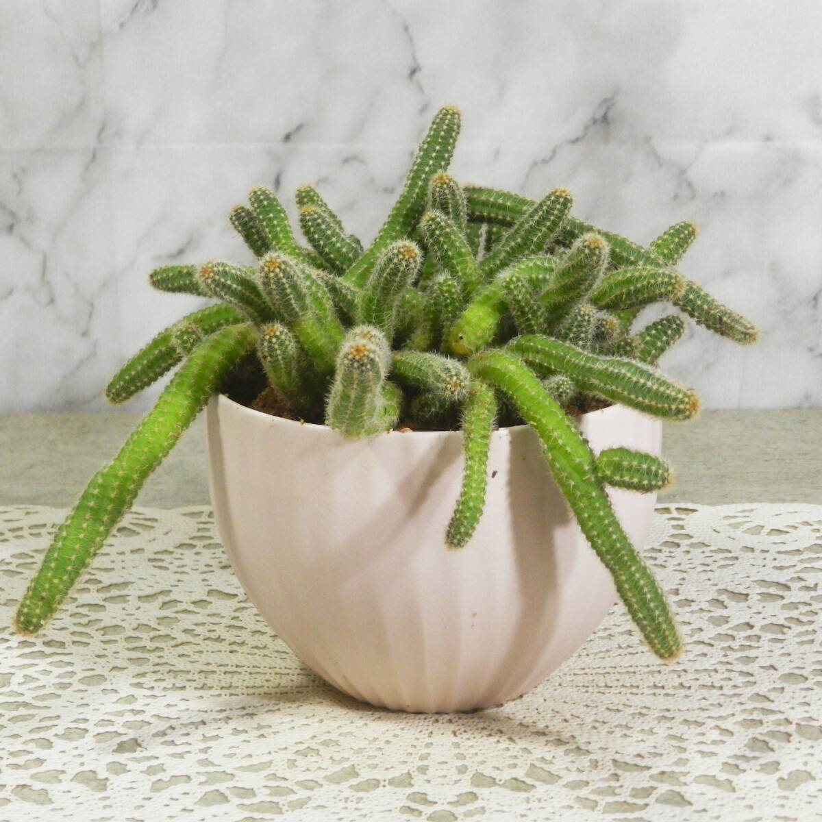 | 何個かの購入商品を一箱にまとめて発送する場合は、送料は一箱にまとめた発送時の箱サイズの送料となります。 一箱での発送希望の場合は、名前や住所等の連絡の前に、先に「まとめて取引」希望の連絡を当店にして来てください。 まとめて取引が大丈夫な場合は、当店より「まとめて取引」の設定をした後に、御連絡致します。 発送時の送料も、設定後に御連絡致します。一箱にまとめられない場合もありますので、その旨は御了解下さい。 NO:00101460 ■大きさ■ 高さ:鉢底より約12cm前後 ※全体の大きさは、「コップ約12cm」と比較して見て下さい。 ■撮影日10月14日 紐サボテン「白檀・ビャクダン」の陶器鉢となります。 科名:サボテン科 ※鉢は陶器鉢です。水が抜けるように鉢底に穴は開いています。 紐サボテンの陶器鉢作りとなります。 サボテンの中でも割と育てやすい品種となります。 サボテンの姿形は写真にて御確認下さい。 写真を良く御確認のうえで購入を御願い致します。 ※出品中に、気温の変化と共に葉の様子は変って行きます。その旨御了解の上で購入を御願い致します。 ***連絡事項・注意事項*** ※出品商品は植物ですので日々変化して行きます。出品中に気温の変化と共に出品商品の様子は変って行きます。その旨御了解の上で購入を御願い致します。 写真とは多少異なる場合もありますので、その旨御了解下さい。 ■日曜、祭日は、当店休業となります。御連絡及び発送は出来ませんので、その旨御了解ください。 夜19時以降の連絡は、翌日以降の連絡となることがほとんどですので、その旨御了解下さい。 ■配達日・時間の御希望■ ※配達日や時間指定がありましたら、御連絡下さい。 ※出品商品の盆栽の中には、盆栽鉢特有の細かな欠け・ヒビ・塗りヒビ・傷・汚れ等がある鉢もありますので、その旨御了解の上で購入をお願い致します。 |