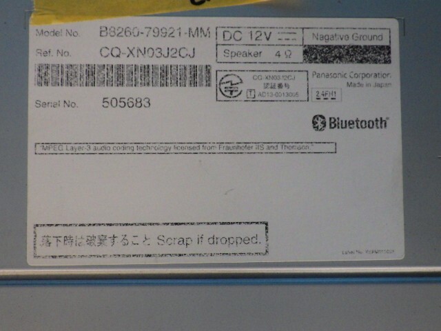 | 部品名 | カーナビゲーション | 部品メーカー品番 | CQ-XN03J2CJ | メーカー代替品番 | |