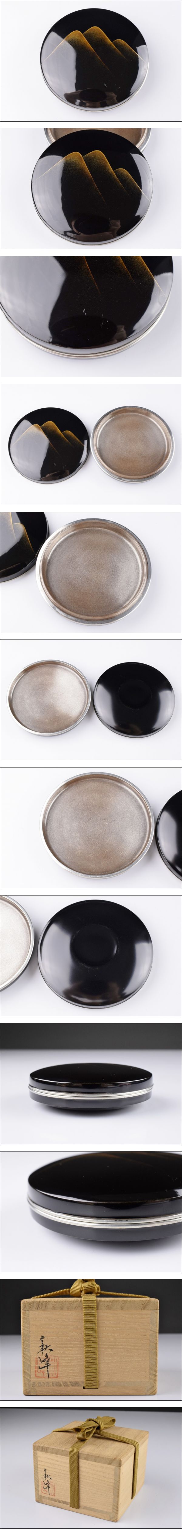 品 名:高崎秋峰 遠山蒔絵 内銀地 棗 共箱 茶道具 香道具 寸 法:高さ 2.3㎝ 直径 7.3㎝ 総重量:40g 状 態:擦り傷等ございます。 | |||