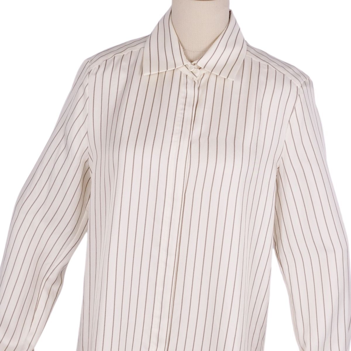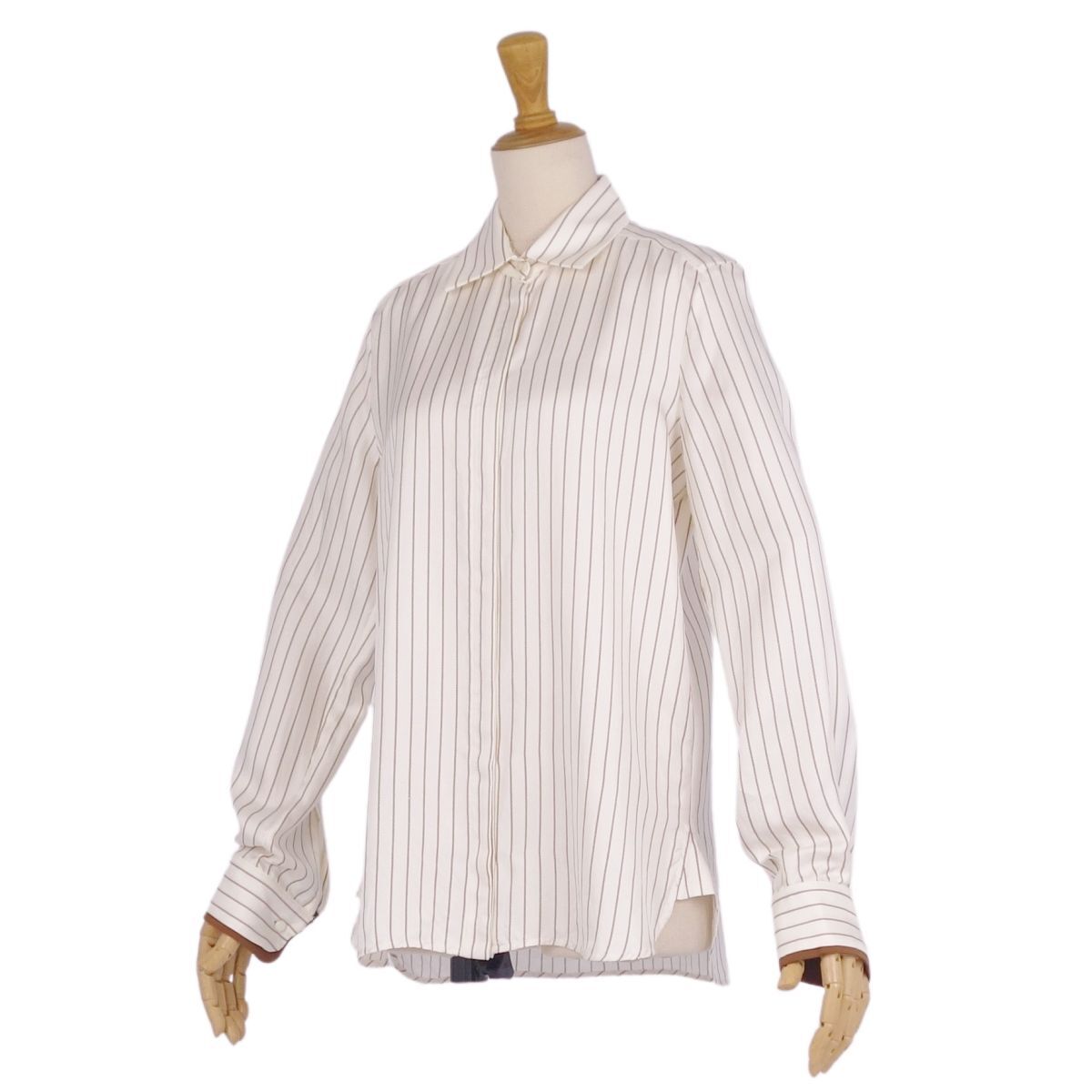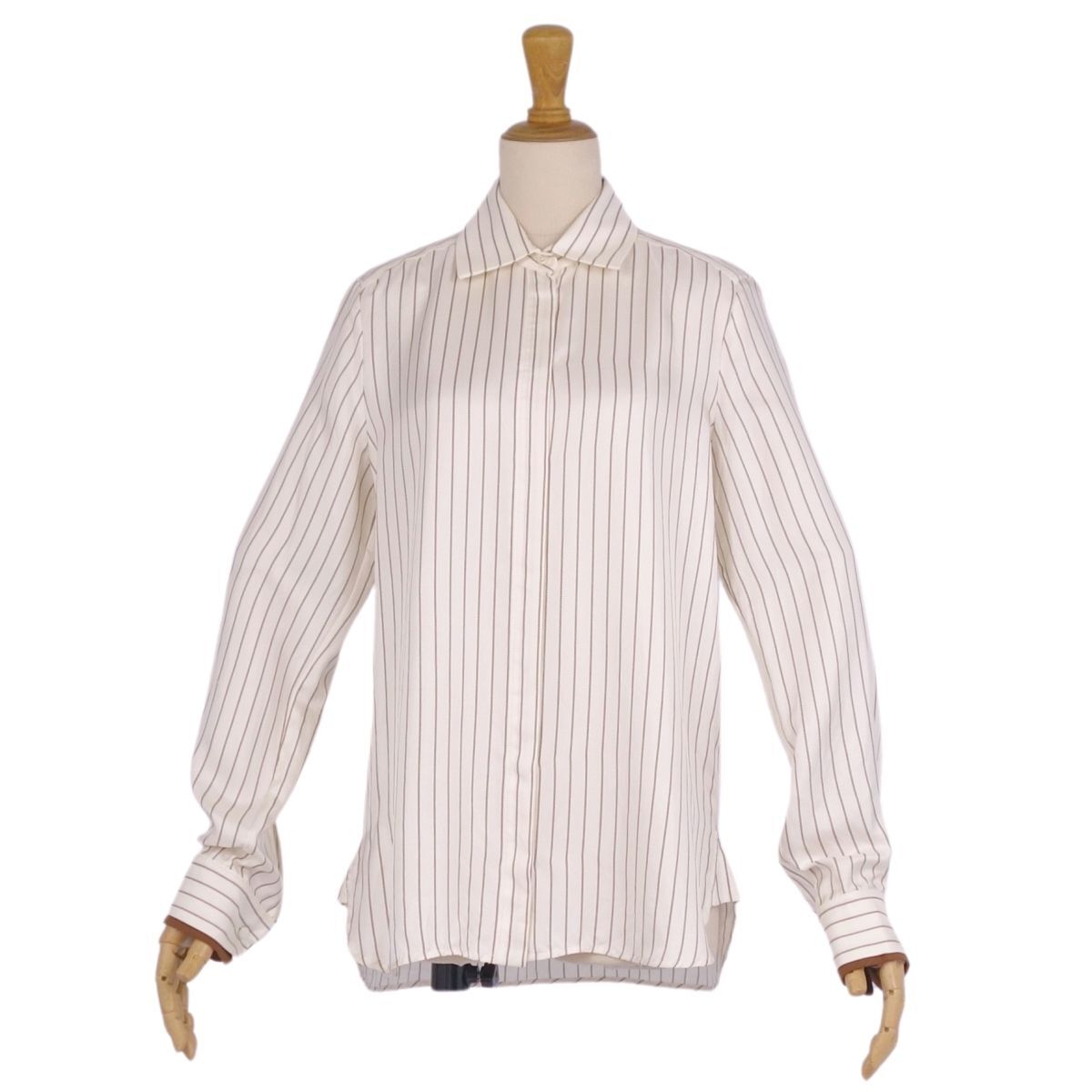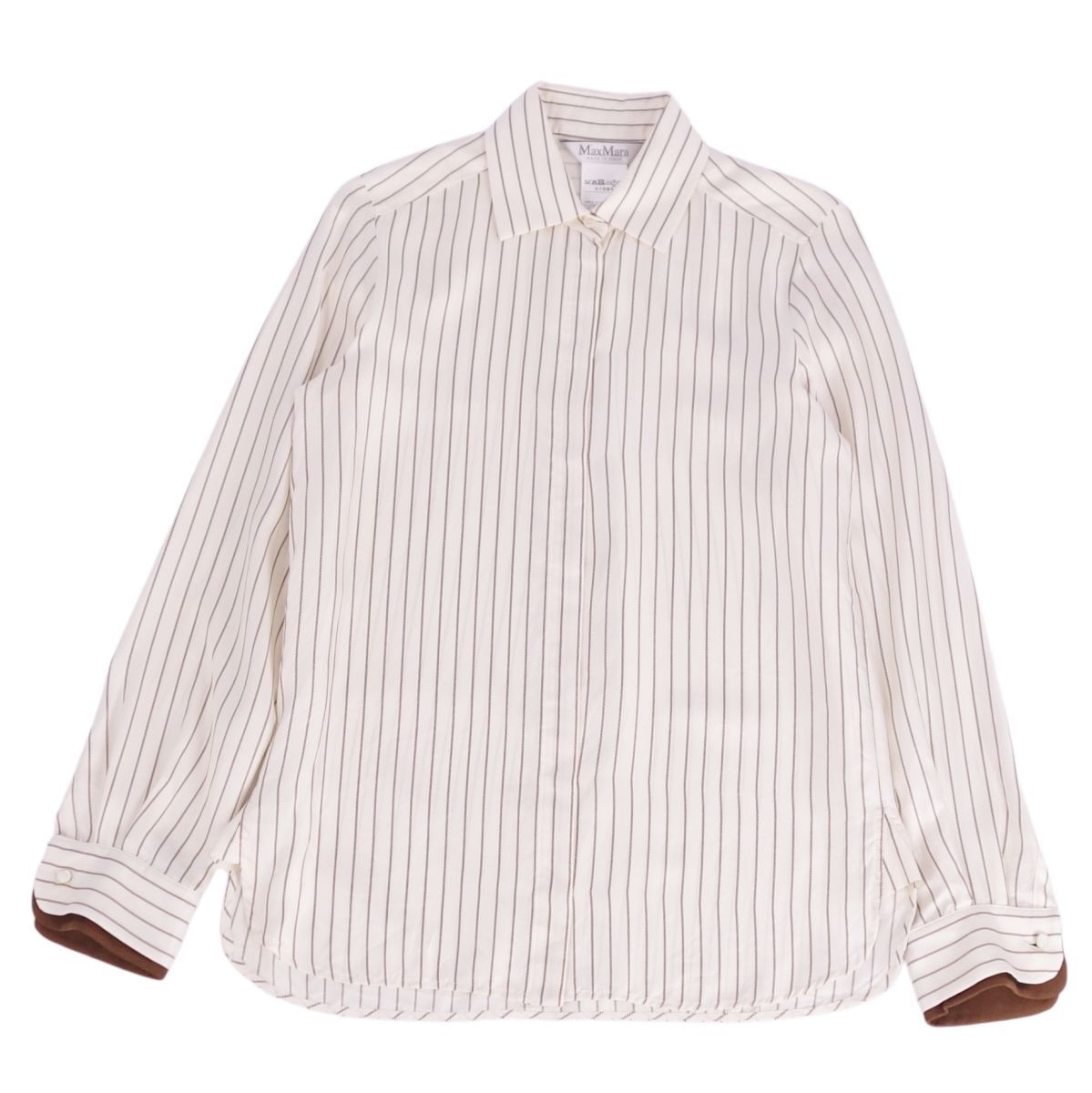 | 美品 マックスマーラ Max Mara シャツ ブラウス ロングスリーブ ストライプ シルク トップス レディース JI40 ホワイト |