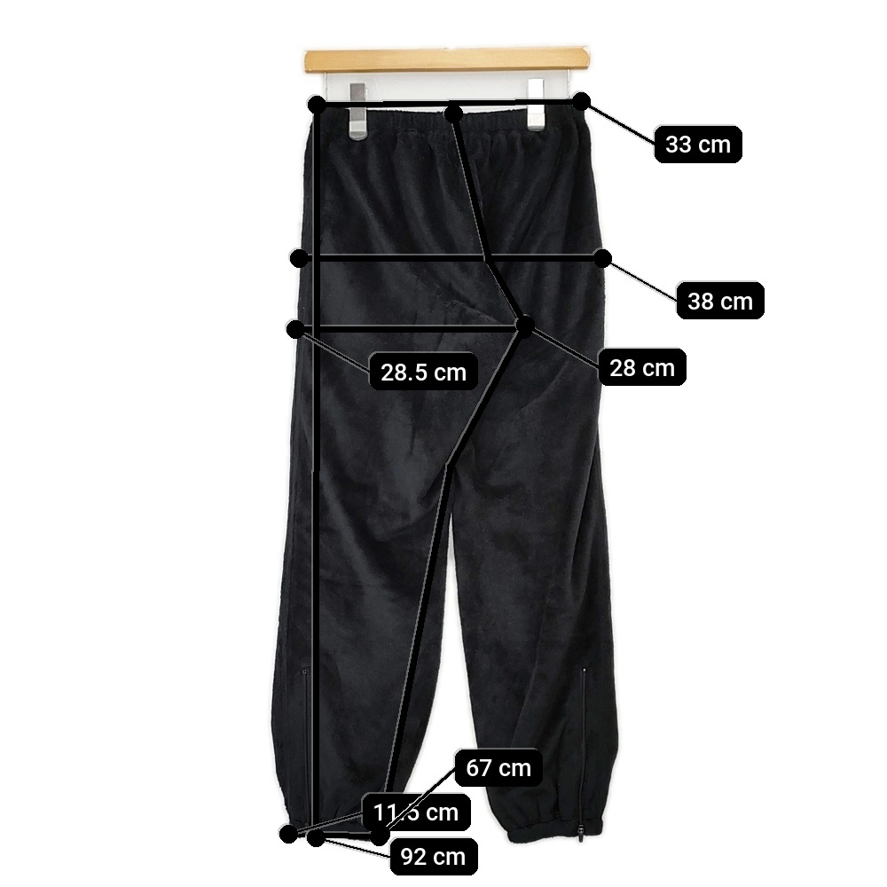 | 実寸サイズ | 総丈:約92cm ウエスト:約33cm ウエスト最長:約42cm 股上:約28cm 股下:約67cm ヒップ:約38cm ワタリ幅:約28.5cm 裾幅:約11.5cm 備考 裾:ゴム+ジップ ※採寸画像がある商品はハンガーに吊るした状態での計測のため、平置きでの採寸とは差が生じる場合がございます。平置きでの実寸サイズをご希望の場合は、ご購入前に必ずご質問ください。 ※記載以外のサイズが合わないことを理由とした返品はできませんので、 記載部分以外で実寸サイズの気になる箇所があれば必ず購入前にご質問ください。 |