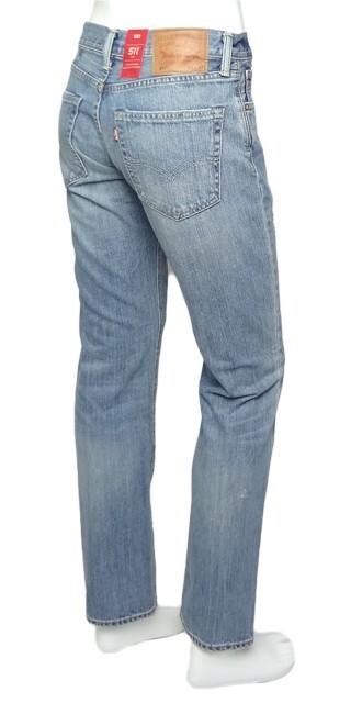 リーバイスの511スリムテーパード/クラッシュ&リペアです。品番/色は04511-1885/ブルー、素材は13,5オンスデニム綿100%、発売は2016年春、サイズ表は画像にあります。