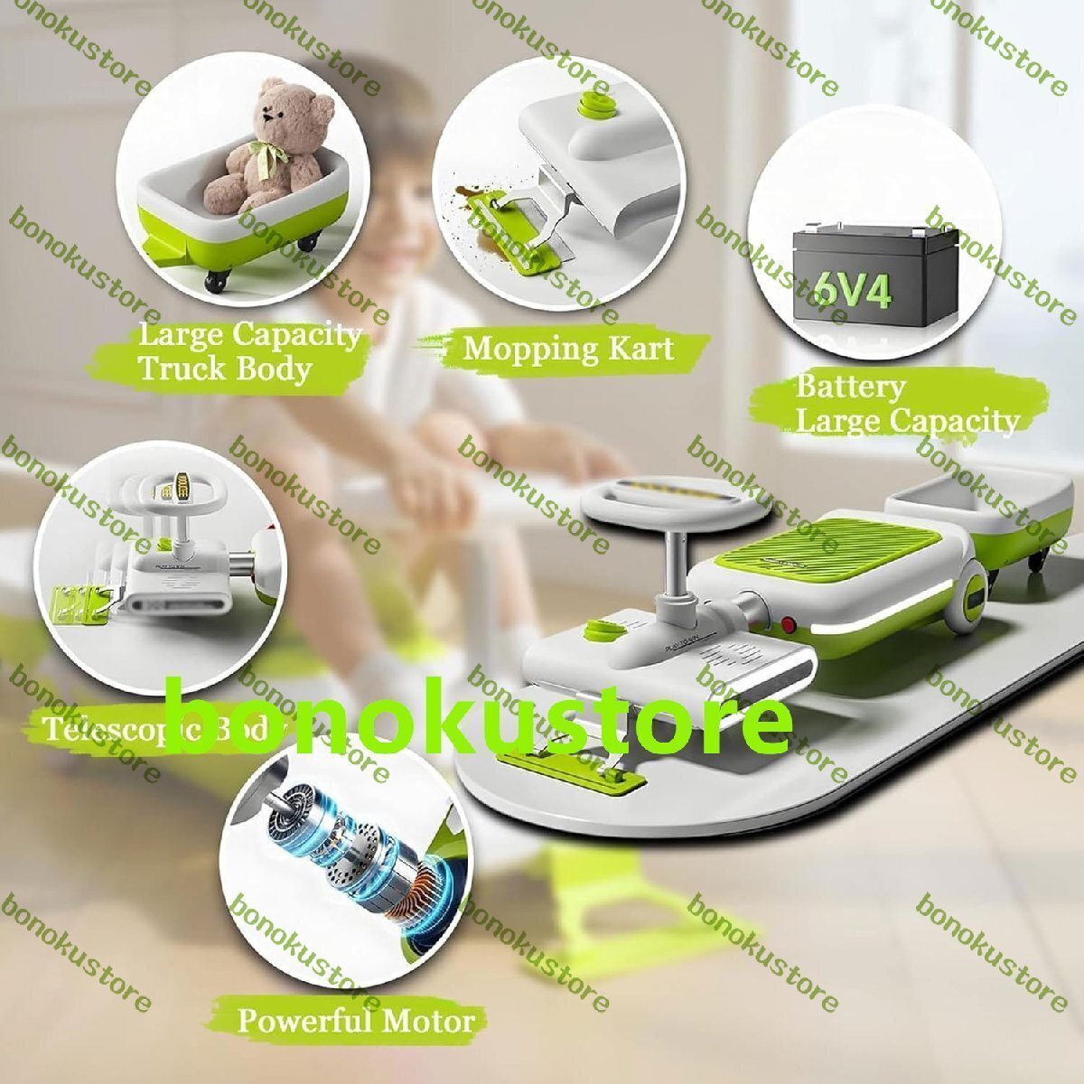 子供用クリーニングゴーカート、トレーラー付き格納式ポータブル電動ウィグルカー、速度調整可能、クールなライトと音楽、モップフロアに乗って自宅、幼稚園、公園、中庭用ウィグルカー