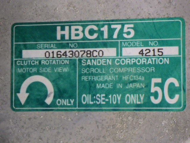 | 部品名 | A/Cコンプレッサー | 部品メーカー品番 | HBC175 | メーカー代替品番 | |