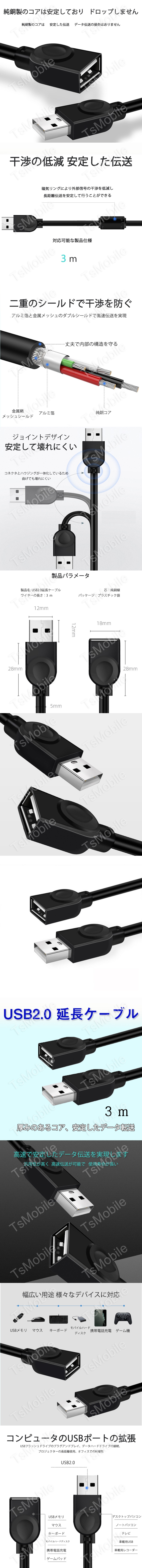 | USB2.0延長ケーブル,長さ3メートルです。色:黒USBAオス-USBAメス汎用性が高く、高速伝送が可能で、使用寿命が長い。USBメモリ、マウス、キーボード、モバイルハードディスク、携帯電話充電、ゲーム機、デスクトップパソコン、ノートパソコン、テレビ、車載用USB、車載用レコーダーのUSBポートへ接続できます。USBフラッシュドライブのプラグアンドプレイ、データハードドライブの接続、プロジェクターの長距離使用、オフィスで活躍しています。純銅製のコアは、安定した伝送、データ伝送の損失はありません。二重のシールドで干渉を防ぐ、アルミ箔と金属メッシュのダブルシールド,太いコアで高速伝送を実現。コネクタとハウジングが一体化しているため、曲げても壊れにくい。キーワード:USBハブ延長 ナビ配線延長 ゲームパッドコード延長 コネクタ 電子タバコ充電 スマホ 携帯電話充電 車 チャージャー 電源延長 電源コードが短くて届かない場合問題解決 |