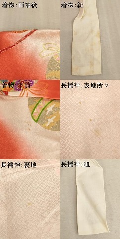 | 着物【正絹】の状態は接写画像のように両袖後に薄い汚れ、紐部分・下前に汚れがございますが その他特に目立ったシミ汚れなどもなく大変良い状態です。 長襦袢【正絹】の状態は接写画像のように表地所々・裏地・紐部分に汚れがございます。 大変上質な逸品になります。 お安く出品致しますので、是非この機会にいかがでしょうか? ※若干たたみシワがございます。