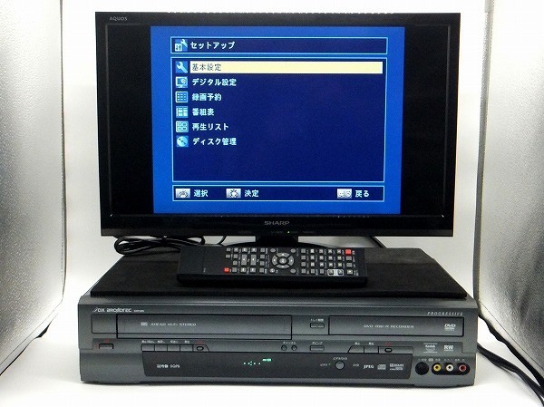 | 商品の説明 | ご覧いただきましてありがとうございます。 「DXアンテナ  地デジ搭載ビデオ一体型DVDレコーダー DXR160V」 の出品です。 こちらはVHSビデオから録画用DVD-R&DVD-RWなどの記憶メディアへダビングができる機種となっております。まずダビングしたいVHSビデオ(コピーガードのかかっていないもの)と録画用DVDをデッキ側に挿入し、リモコンボタンで録画モード(XP・SP・LP等)を選択してから、中央のダビングボタンよりワンタッチで簡単にダビング録画が行えます。また付属リモコンからもダビング録画を同様に行えます。 説明書、B-cas、リモコン、AVケーブル、アンテナケーブル付きです、お品物を受け取ったその日からテレビに接続してご家庭でご使用いただけます。(*旧テレビではなく現行のテレビに関しましては、接続方法など、テレビの説明書などをぜひご参考いただき、事前によくご確認くださいませ)オーバーホールメンテナンス済み(分解整備)で動作チェックも良好な一品です。お受け取り後に万一動作不良があった場合は速やかに対応させていただきますので、その場合は取引ナビへどうぞご連絡くださいませ。お探しの方がいらっしゃいましたらこの機会にぜひどうぞ♪ ーオーバーホール(Overhaul)解説ー こちらのお品物は一度部品単位まで分解した後に,清掃・再組み立て作業をしております。同時に機体の改善・点検も行っております。「オーバーホール済み」とはそれらの整備・点検作業が無事に完了したお品物です。例えばメンテナンスされていない中古品においてはその大半が、外見ではわからないくらい内部は機体が吸い込んだホコリやゴミなどでほぼ汚れております。また長年のご使用による経年変化により、ギヤ部分のグリスが固化し動きが悪くなったり、内部の駆動ベルトが劣化したり、ビデオが詰まって出てこなくなったり、ディスクを読み込まなくなったり、トレイが開かなくなったり、そのさまざまな要因が重なり故障の原因となります。オークションサイトやアマゾン、リサイクル店で中古を購入したら機体内部がホコリで真っ白だったなんてこともよくあります。経験上とくにビデオやレコーダー系のデッキでファン内臓の物は、中にホコリや雑菌の巣窟となっている場合も少なくありません。ファンから噴き出す匂いなども伴い衛生的にもあまりよろしくはありません。当方は機体をすべて分解した後に、機体の一番下の鉄板プレートのベースから順々にクリーニングを実施し、再組立てと点検を行い丁寧に仕上げております。オーバーホール整備後はまず機体本体がずみずみまでピカピカになり、各部の動きもスムーズとなり、より安定した動作状況下でご使用いただけることと思っております。 ![]() ![]() 【動作チェック】  ★☆ 動作確認はすべて当方手持ちの品物にて取り行っております ★☆ ![]() (VHSビデオからDVDへビデオダビング中) ![]() ![]() ![]() (メインメニュー画面) ![]() (フォーマットやファイナライズもOK、動作確認済みです) <主な動作チェック項目> 〇VHSビデオ再生・再生送り・再生戻し・一時停止・早送り・巻き戻し・停止【基本動作OK】 〇DVDビデオ再生・再生送り・再生戻し・一時停止・早送り・巻き戻し・停止【基本動作OK】 〇VHSビデオ ⇒ DVD-R(CPRM対応)DVD-RW(CPRM対応)【ダビングチェックOK】〇DVD-R(コピーガード無し映像) ⇒ VHSビデオ 【逆方向ダビングチェックOK】 〇録画用DVD-R・DVD-RWディスクのフォーマット・ファイナライズ【OK】 〇市販品ならびにレンタルDVDソフトの再生・その他音楽CDの再生【OK】 〇地デジチャンネル設定後、録画用DVDならびにVHSビデオへ直接番組録画【OK】 〇リモコンから番組表ボタンよりタイマー予約録画【OK】 〇本体ならびにリモコンの各ボタンのチェック【OK】 〇ビデオ挿入・取り出しならびにDVDトレイ開閉チェック【OK】 〇ビデオやDVD再生時の映像出力モニターチェック【OK】 *当方出品物デッキの「ビデオ⇒DVD ダビングテスト」は、再生時間が1時間30分~2時間程度のVHSビデオにて、整備後毎回3~5本 「ビデオ ⇒ DVD」 のダビングの動作確認を行っております。 *コピーガード信号の入ったビデオソフトやDVDソフトは、機体仕様上ダビングはできません。 *当方のダビングチェックではメーカー推奨の「DVD-R」と「DVD-RW」の2種両方の録画用DVDディスクにてダビング動作を確認済みです。 *使用のメディアは三菱ケミカルメディア(I・O DATA)【バーベイタム】DVD-R(CPRM対応) DVD-RW(CPRM対応) にてダビングチェック動作確認済みです。 *こちらのデッキはテレビやモニターへの接続はHDMIケーブルは非対応になります。メインは3色(赤白黄)AVケーブルでの接続です予めご了承くださいませ。 *なおこちらのデッキは簡易地上デジタルチューナー搭載機で、現在デジタル放送録画にも対応しております。地デジ受信設定(東京)や番組録画もチェックOKでした。ハードディスク非搭載機なので番組を録画用DVDディスクにそのまま直録画できます。 *上記説明以