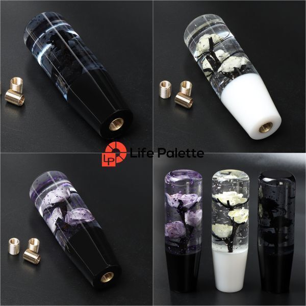 | 車内を彩る昭和レトロの懐かしさ 水中花 シフトノブ 汎用 15cm 150mm 職人による ハンドメイド 手作り 当時物 当時モノ 幻想的な美しさ 綺麗 透明 クリア 新品 GS19グリーンパープルブルー 【どこか懐かしさを感じるデザイン】 昭和レトロを感じる水中花が美しく幻想的なクリスタルシフトノブ。 光に当たるときらきらと反射し、高級感のある印象に。車内の雰囲気を一変させます。 【ひとつひとつ手作りされたこだわりの逸品】 ひとつひとつ違った表情を見せるハンドメイド品。 毎日の運転が楽しくなる愛着の湧く逸品です。 【車内の雰囲気を一変させる幻想的な美しさ】 お使いのシフトノブをこのシフトノブに変えるだけで車内はたちまち和の雰囲気に。 愛車のカスタムやイメチェン、模様替えをお考えたの方におすすめのアイテムです。 【AT・MT対応!幅広い車種に対応】 商品本体のネジ径はM12×1.25、付属のアダプター3点のネジ径はM8×1.25、M10×1.25、M10×1.5。 【幅広い車種に対応】 汎用品のため、ほとんどのトヨタ/スバル/スズキ/ダイハツ/ニッサン/マツダ/ミツビシ/ホンダ車に対応できます。 【簡単取付】 ねじ込み式なので、イモネジで締め込むだけで簡単に取り付けます。 【サイズ 150mmのロングタイプ】 存在感のあるロングタイプで握りやすく、なんとも言えない握り心地が癖になります。 シフトチェンジもしやすく、助手席から見えるそのシフトさばきはかっこよく映ります。 【プレゼントやギフトにも最適】 車好きの旦那さんや彼氏さん、友人へのプレゼントにいかがでしょうか。 おもしろいデザインで喜んでもらえ、話のネタになること間違いなし♪ 【シフトノブ続々出品中♪】 | |||