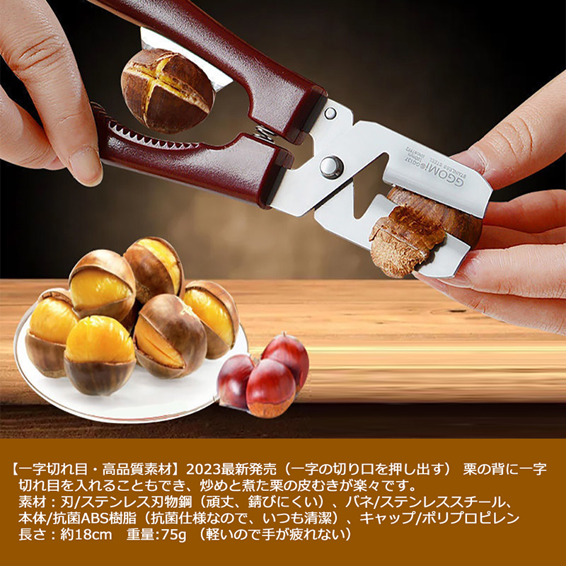 【一字切れ目・高品質素材】2023最新発売(一字の切り口を押し出す) 栗の背に一字切れ目を入れることもでき、炒めと煮た栗の皮むきが楽々です。