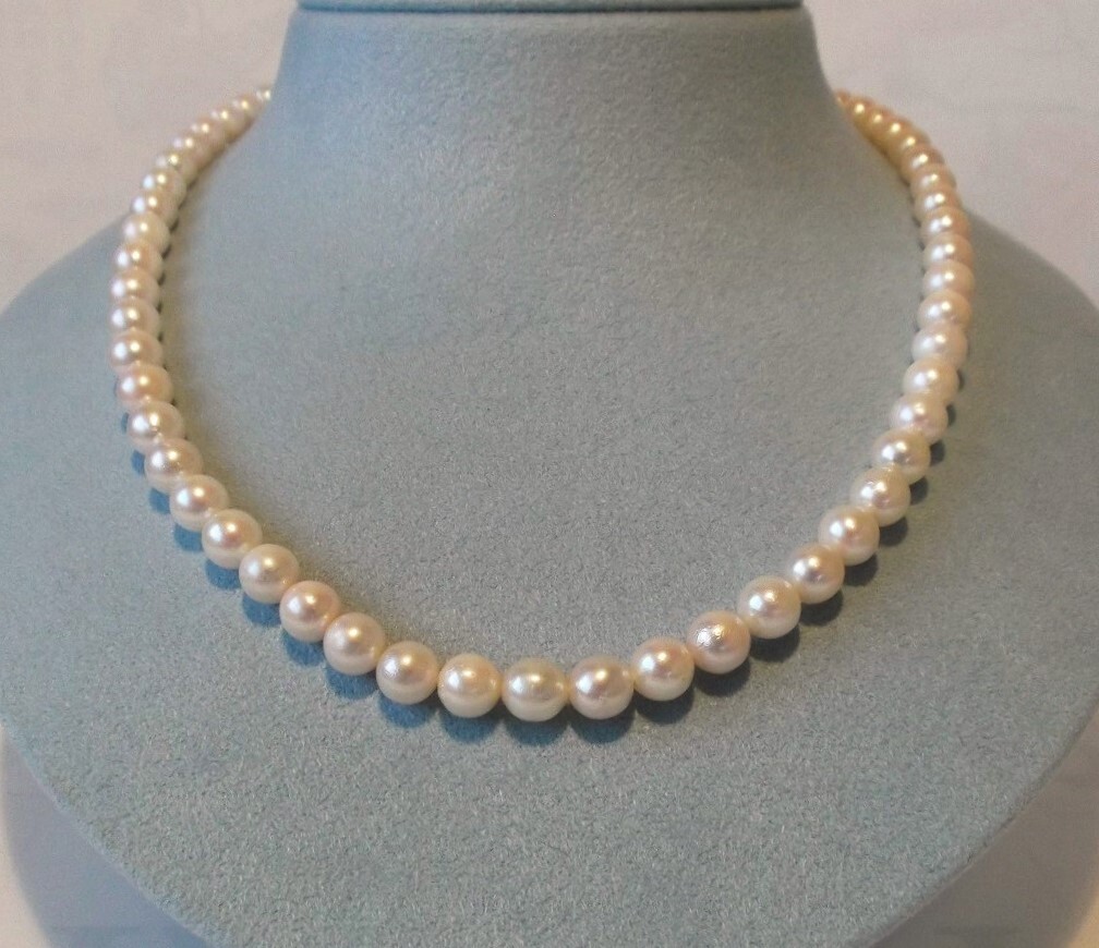 巻き・照り・色・瑕・形状・仕上げの標準的なあこや真珠で パールホワイト・ライトピンクなどの深い色合いが演出する 定番のフォーマルパール・ネックレスです 新珠:今年の浜揚真珠で製品として出回るのは今年~来年以降 新品:昨年以前に浜揚された真珠で、相場が上る前の浜揚真珠 【あこや:和珠真珠】 【色】パールホワイト・ライトイエローピンク 【巻】標準 【照】標準 【瑕】小/中 【形】ほぼ丸 【仕上げ】良 【サイズ】最大:7.5mm 【長さ】約43cm:プリンセスサイズ (クラスプ含む) 【糸替不要】シリコンクッション・ワイヤー仕上げ 【クラスプ】天珠付・シルバー・プッシュ・タイプ(プラチナ仕上げ) 【新珠の産地・浜揚げ相場は、数年前の産地・浜揚げ価格の3倍以上】 【新品・未使用】 【参考小売価格の2掛 以下】 【業者卸価格 以下】 【決算赤字放出品】 【原価割れ・お値打ち品】 【全国送料無料】 | ||||