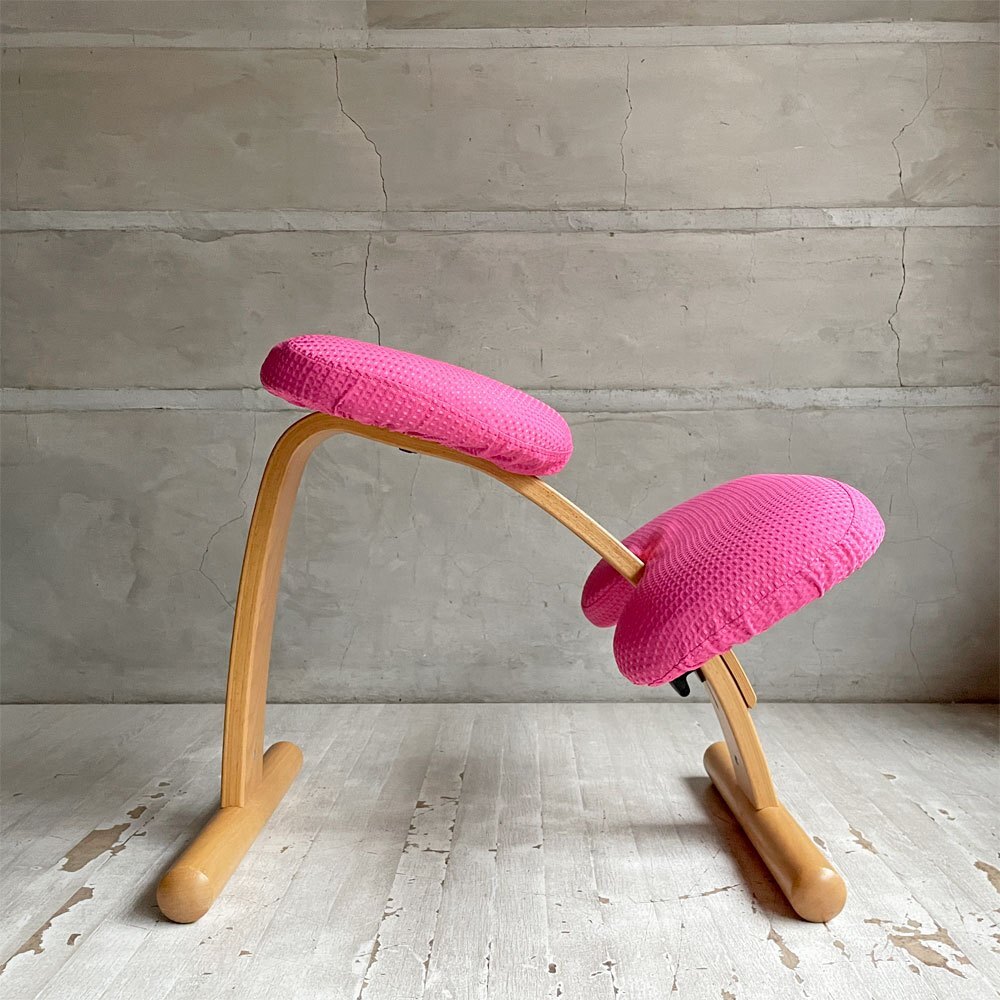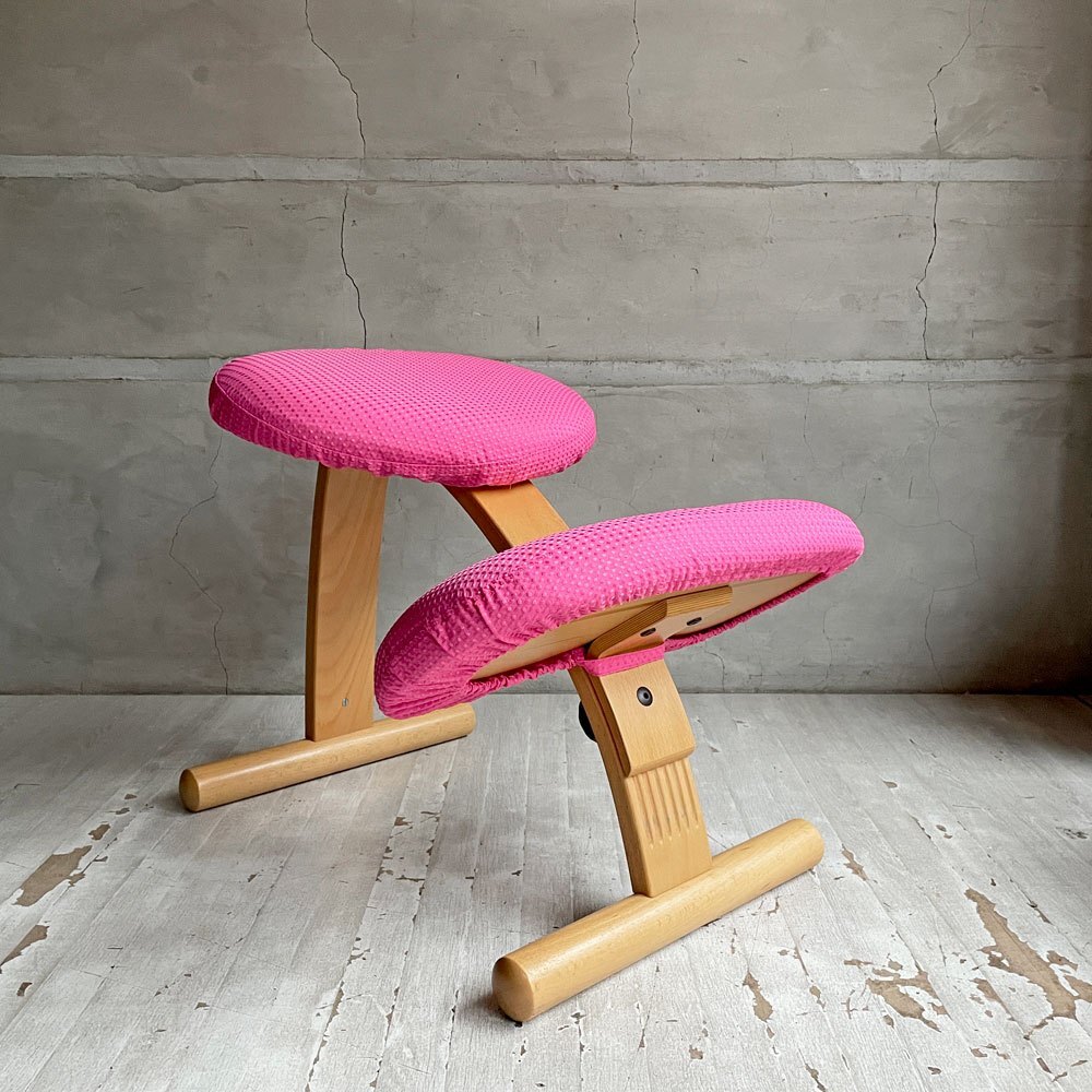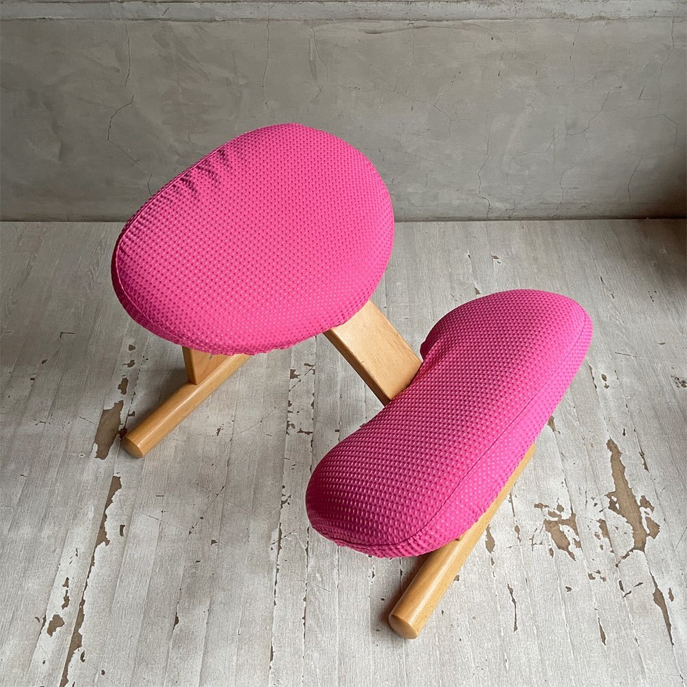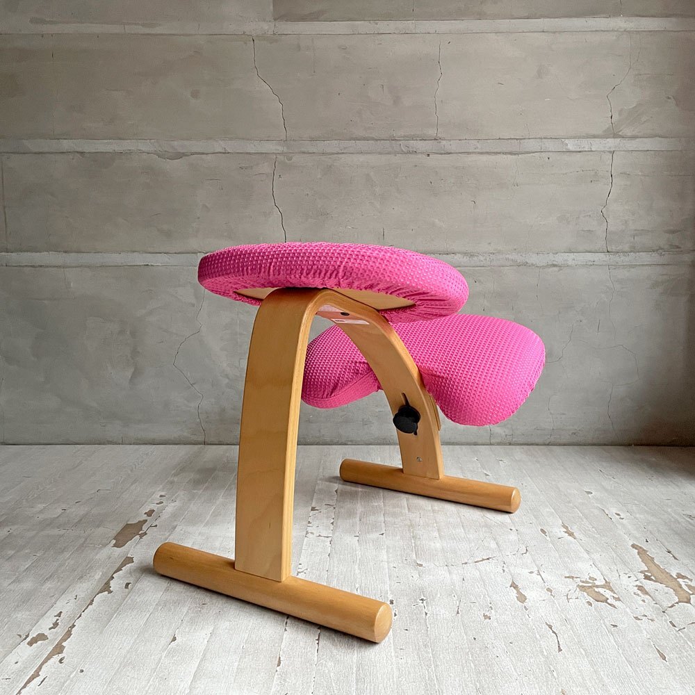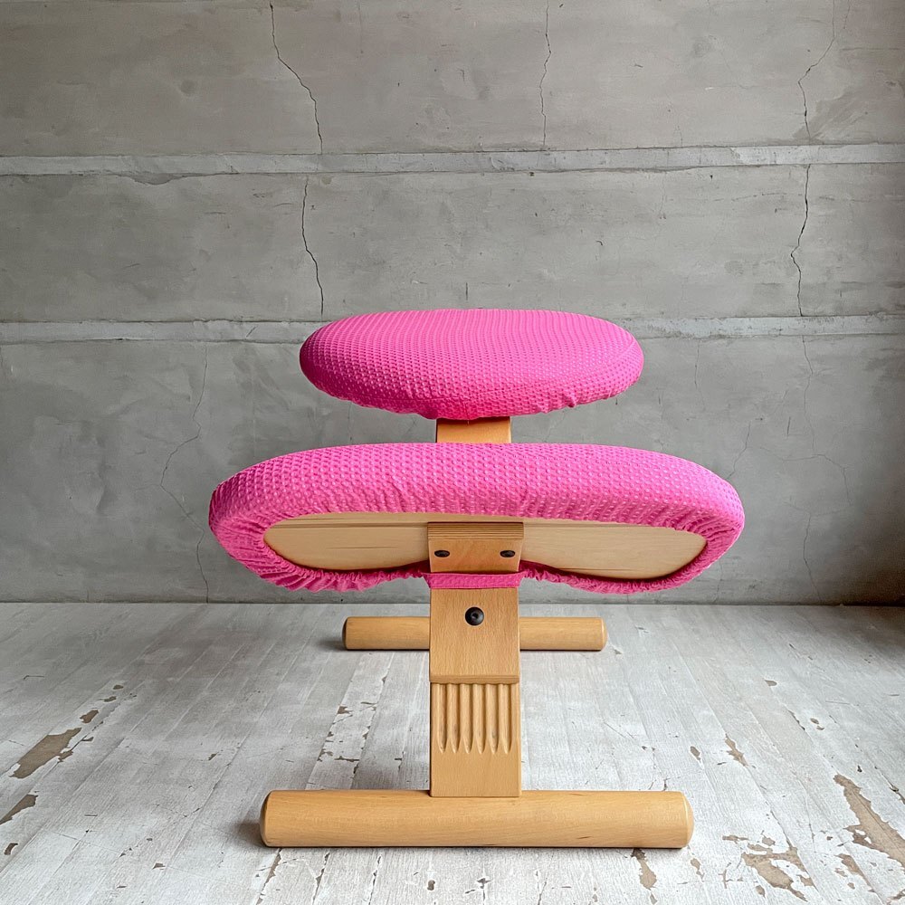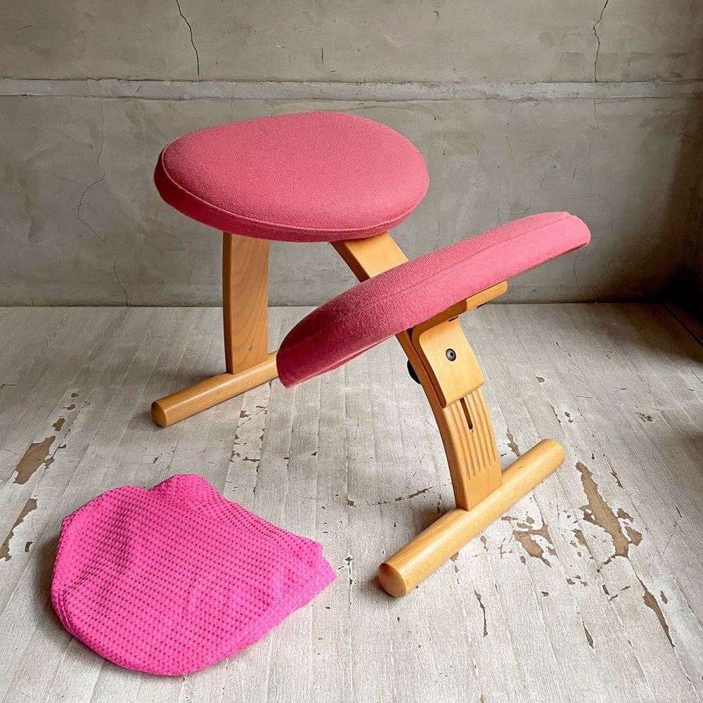 | コメント | リボ社は、1918年に設立されたノルウェーの家具工房。2013年より“バランスラボ(サカモトハウス)”がライセンスを取得しバランスイージーの製造を行っておりますが、同社はそれ以前に製造を請け負っていた会社です。 今回はその“リボ Rybo”から"バランスイージー Balans Easy"が入荷いたしました。 "バランスイージー Balans EASY"はハンス・クリスチャン・メンショールがヨガや乗馬の座り方からインスピレーションを受け誕生しました。股関節が開くことによって、自然と血流がよくなり、呼吸も自然に楽になります。 従来の椅子は座った際上体と太ももの角度が90度になるのに対して、バランスイージーの角度は120度になるよう設計されており、理想とされるS字カーブの姿勢を自然と作り出す事が出来ます。 猫背の改善や、首や腰にかかる負担を軽減し、肩こりや腰痛になりにくい体質と集中力アップの効果が見込まれる為、お子様の学習椅子としても人気を集めています。 クッションにはウレタンフォームを使用し、長座での負担を軽減。 また、膝を乗せるクッションの高さは身長に合わせて調整が出来ますので、子供から大人(110~180㎝)までの方に使用していただけます。 足先にはブナ材の無垢材、そしてフレームには軽量でしなりに強いプライウッドを使用しており、組み立ては飛騨の職人たちによって行われており非常に堅牢な造りとなっています。 今回はピンクの純正替えカバーが付属するお買い得なセットとなります。 座ってみると頭から糸で引っ張られている様に背筋が伸びてしまうバランスイージー、腰痛や肩こりを改善し子ども達を綺麗な姿勢の大人へと成長させてくれる一脚です。 ※当ショップは、主にリサイクル品を取り扱っております。基本的にUSED品である事をご理解頂き、ご入札をご検討下さいませ。 |