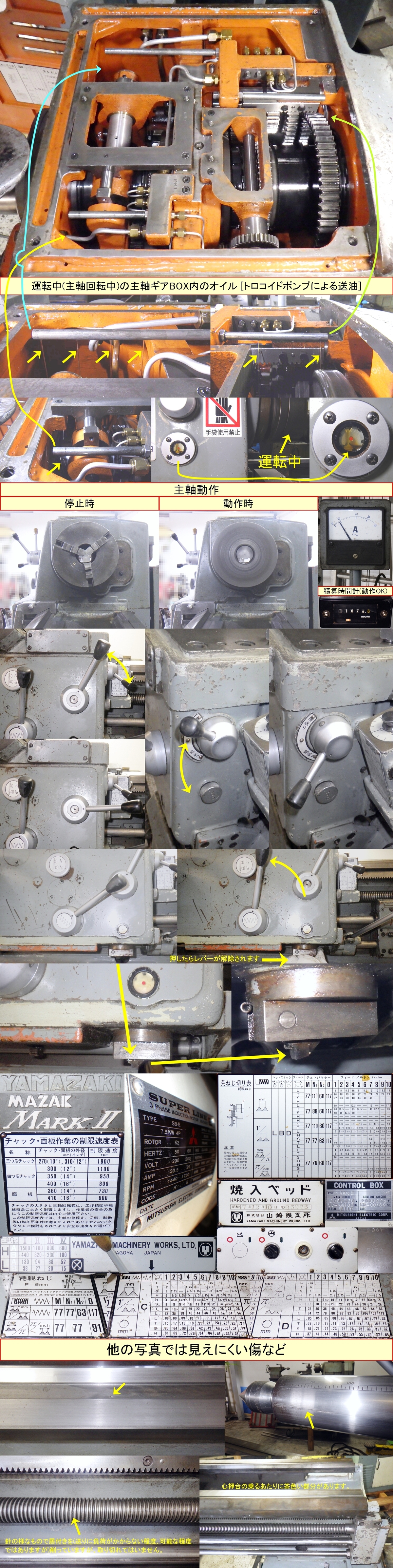 主軸台:ヘッドストック蓋を外し、内部確認~始動してオイルがかかっている事(トロコイドポンプ正常動作)を確認済みです。