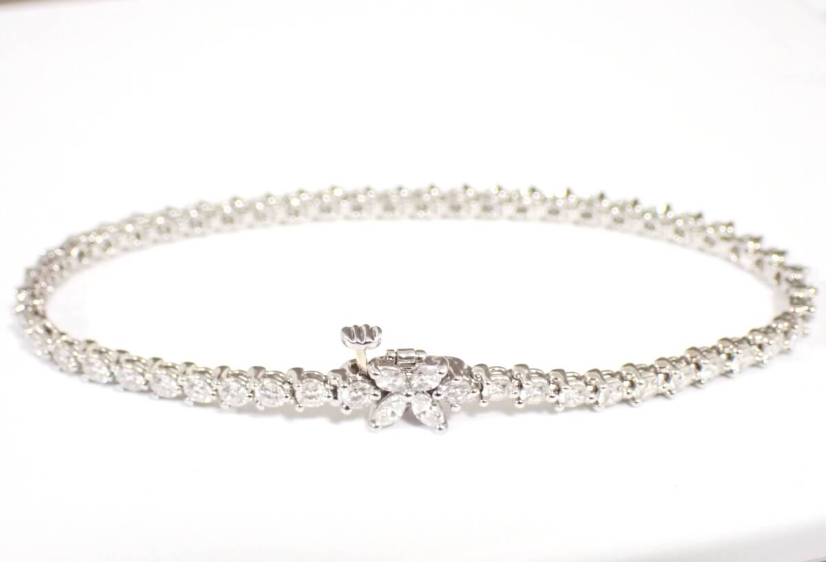 | コメント | 最高品質のダイヤモンドから想を得て生まれたティファニービクトリア。そのきらめきに飾られてマーキスシェイプのダイヤモンドが美しく際立つ、気品溢れるクラシカルなライン ブレスレットです。商品の状態は細かいスレはございますが、全体的にきれいな状態でございます。 ダイヤモンド、プラチナ共にきれいな状態を保っております。 ダイヤモンドカラット:3.08ct 総重量:14g 全長:約16.5㎝ 幅:約3㎜ 付属品は外箱、内箱がございます。緩衝材を巻いて丁寧に梱包し発送させていただきます。(土日・祝日は発送業務をおこなっておりません) | |