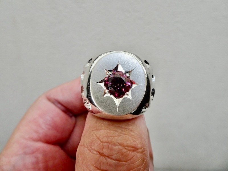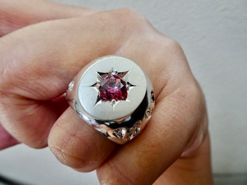 | ■ ■ 商品名: 『一つ星レッドジルコニア、ファイヤーパターン、プラチナ楕円の印台リング』 ■ ■ |