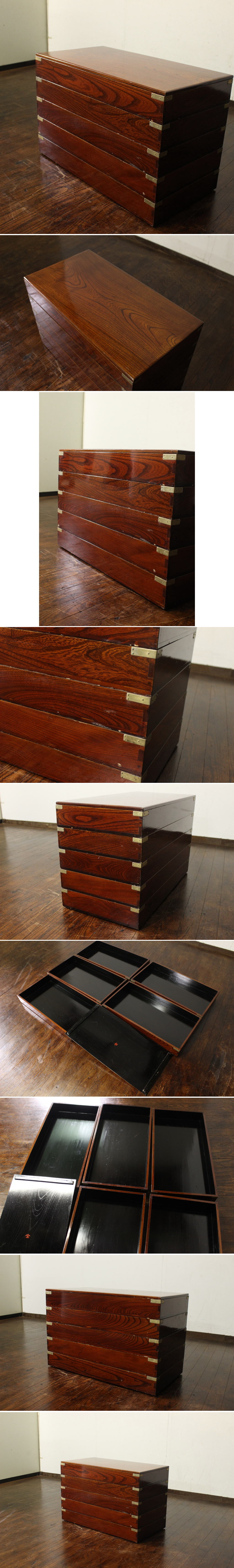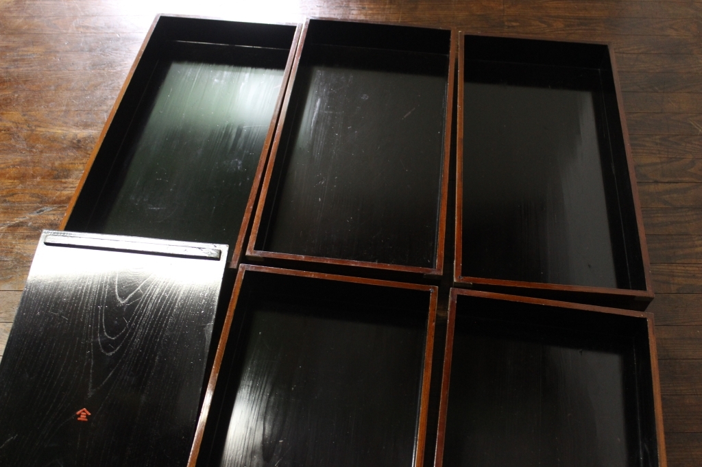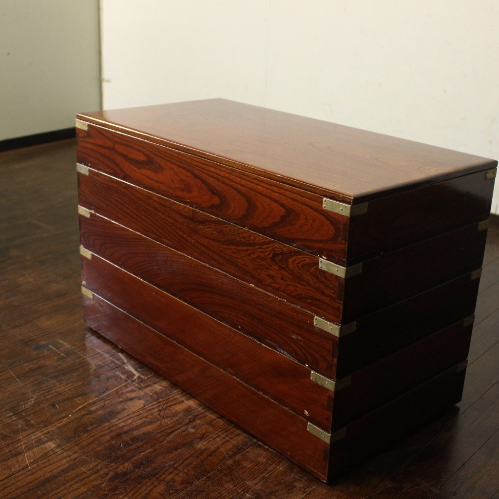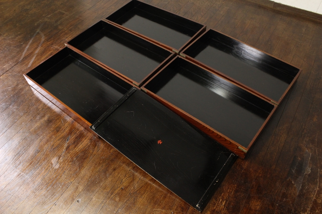 | 商品紹介 | 欅材 番重五段です。 使いこまれた雰囲気が渋い、レトロな趣きある一品。 上蓋や周囲には欅材、艶も残っており綺麗です。 和モダンな雰囲気ですので、実用は勿論、 ディスプレイのアイテムとして活躍は間違いなしです。 |