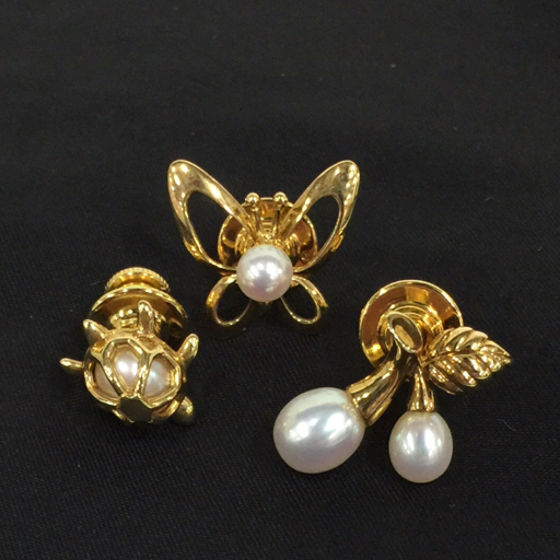 | ミキモト 金具 K18 さくらんぼ / 蝶 / 亀 デザイン パール 真珠 ピンブローチ アクセサリー 計3点 A21955 |