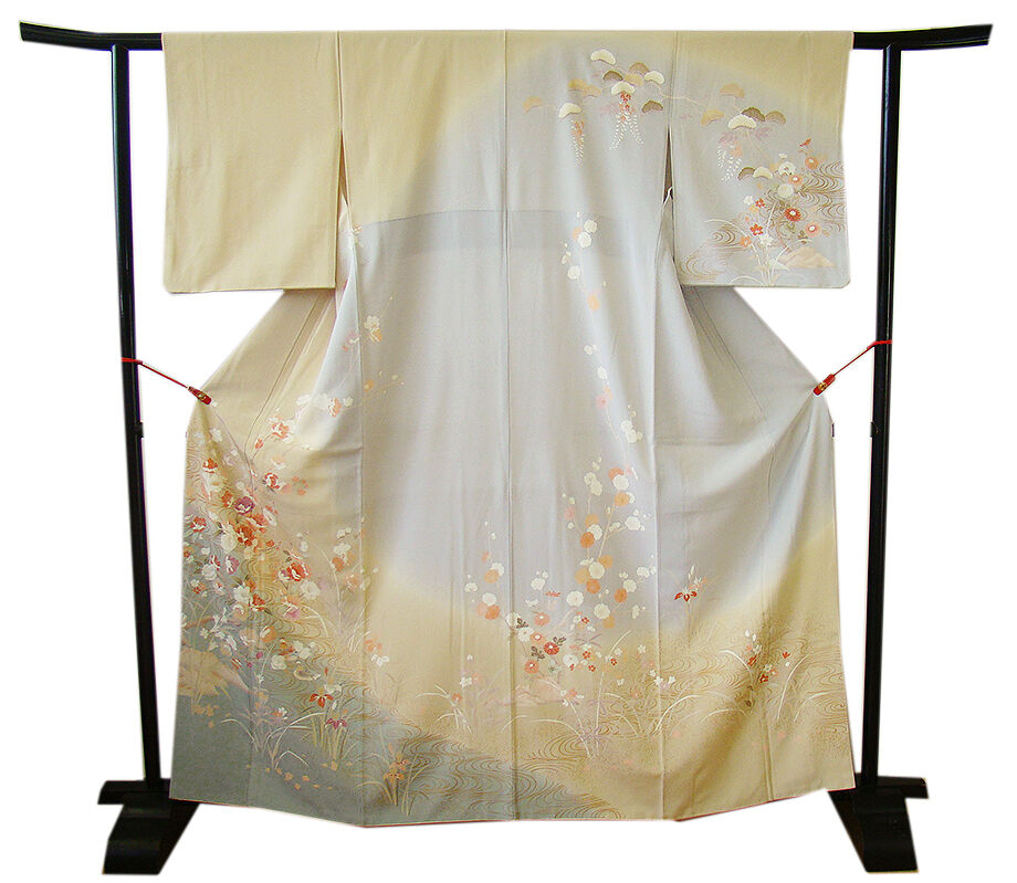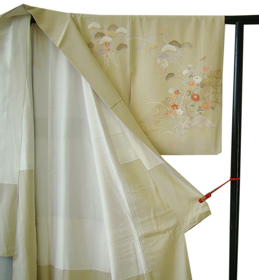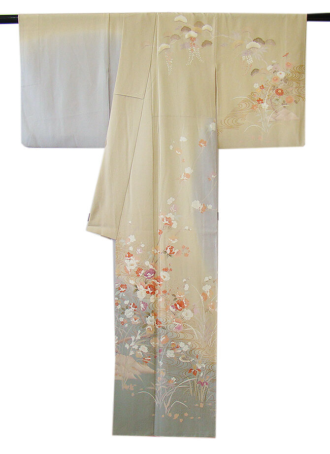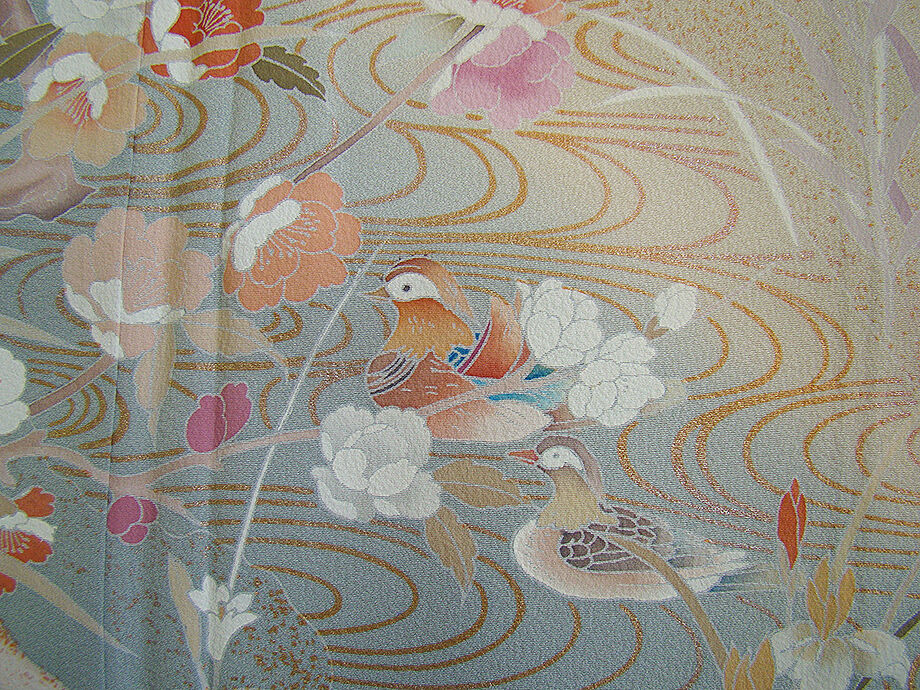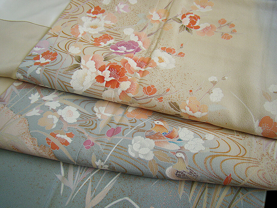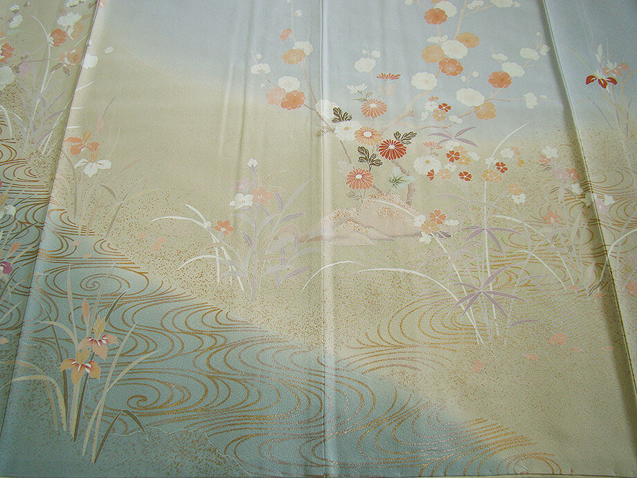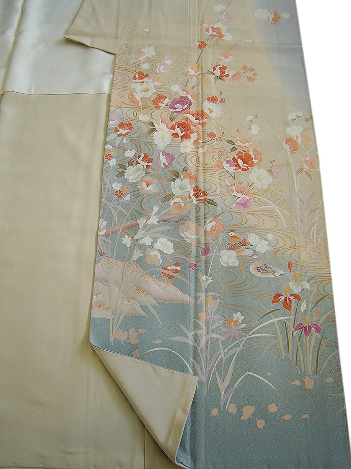 | 商品説明 | こちらのお品は「袷」ですので10月から5月までお召頂ければと思います。 とてもしなやかで柔らかな手触りの着心地良い重めの上質な極上ちりめん地の生地、 淡い蒸栗色地に紫水晶、薄い水浅葱色ぼかしに流水、水鳥、花木柄等の染柄に金彩加工仕立て、 気品に満ち溢れた彩りが正統派のお着物として一枚は欲しい逸品の素敵なお着物です。 八掛は共布に柄入り(正絹)、幅広い年代の方にお召頂けます。 |