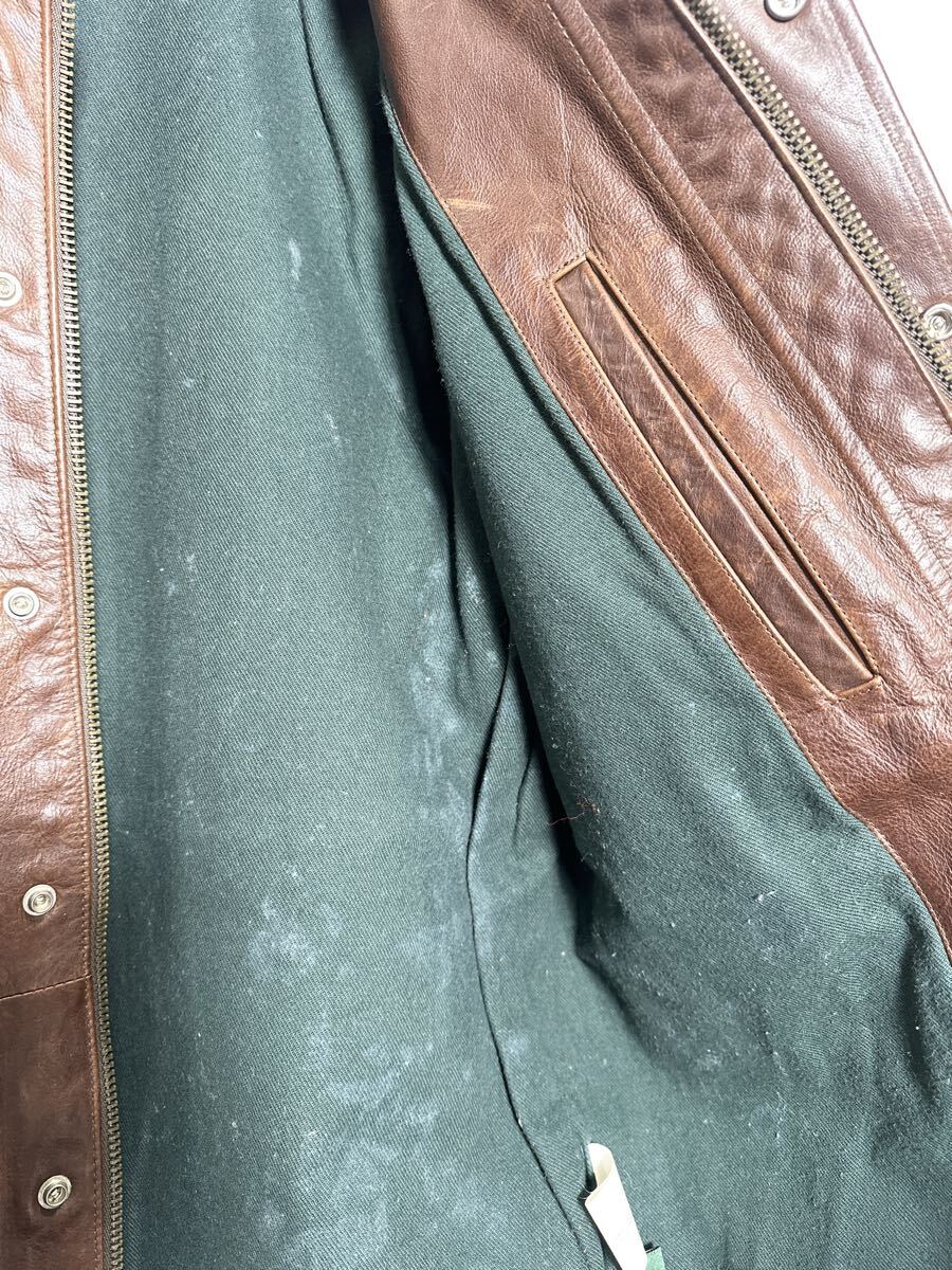 FILSONのボタンジャケットの出品です。色はブラウン、サイズはXSです。上記に採寸しているものを記載しているので参考にしてください。知り合いから貰ったレザージャケットですが、数回使用した後大切に保管をしていました。 ポケットやジップの付近、袖部分などカビの様な汚れがあります。内側にもカビがあります。全体的に引っかきキズがあり、画像を載せているので参考にしてください。汚れ等は記載するようにしていますが、中古品の為小さな汚れや小キズ等の見落としがある可能性がありますのでご了承頂ける方のみ入札をお願いします。神経質な方は入札をお控えください。写真等で商品をよくご確認の上、入札お願い致します。なお落札後は、ノークレームノーリターンでお願い致します。何かご不明な点やご質問等がございましたらお気軽に必ずご連絡ください | |
