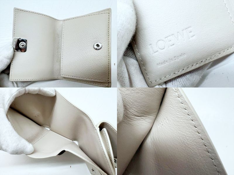 良好品 LOEWE ロエベ アナグラム トライフォールドウォレット 三つ折り財布 ライトゴースト C821TR2X16