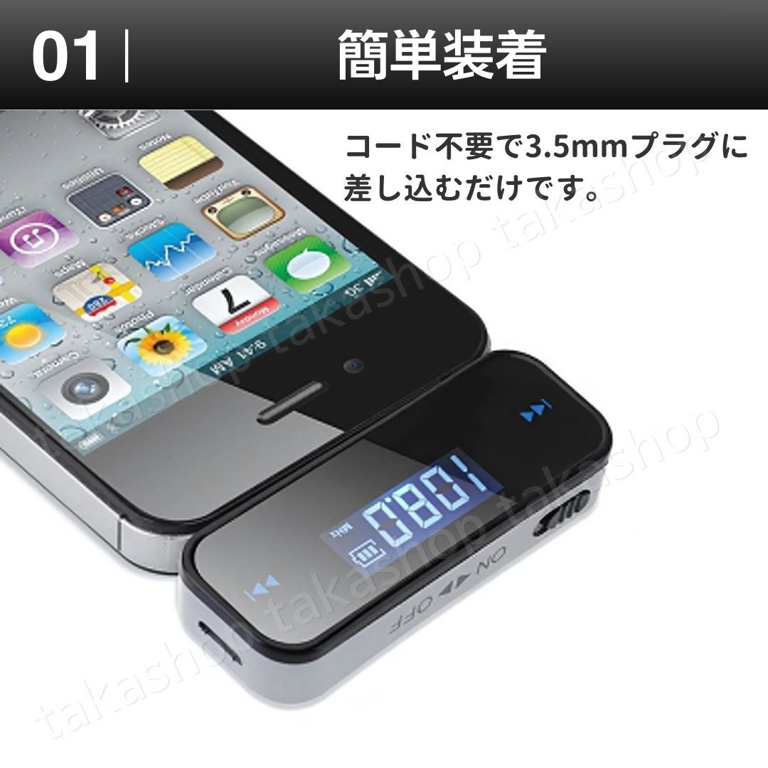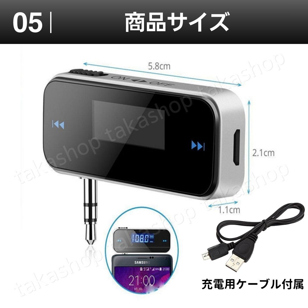 | 商品説明 | ご覧いただきありがとうございます! ●商品説明 充電式バッテリー内臓で音質が大幅にアップしたFMトランスミッターです。 ●商品特徴 1.簡単装着 コード不要で3.5mmプラグに差し込むだけで使用できるトランスミッターです。 3.5mmプラグを使うすべてのモバイル機器、ポータブル音楽プレイヤーやウォークマンなどで使用することができます。 2.簡単設定 周波数を合わせるだけで簡単に設定して音楽を聞くことでできます。 好きな周波数で合わせることができるので、どこでも快適な音質で音楽を聞くことができます。 USBポートがあれば車内でも充電可能です。 ・商品仕様 周波数 : 87.5MHz ~ 108.0MHz 周波数特性 : 100 ~ 15000Hz 入力端子 : 3.5φステレオミニプラグ 充電方式 : (DC5V 1A) USBポートで充電 入力電圧 : 5 ± 0.1V 車載電流 : 600mA 保存温度 : -20℃ ~ +50℃ 操作温度 : -10℃ ~ +40℃ 容量 : 120mAh(リチウム電池内蔵、充電可能) ステレオ分離度: 38dB 対応機器 :iPhone6S以前、Android、イヤホンジャック付きの機器すべて ●商品詳細 サイズ:縦58mm×横21mm×幅11mm セット内容:本体×1・充電用USBケーブル×1 ●発送について 【ゆうパケットポストminiで発送します】 発送日 :お支払い後1〜3日以内(平日) 到着目安:発送後2〜4日程度 ※商品はポストに投函されます ※遠方の方はもう少しかかる場合もございます 【配送方法の変更はできません】 ●お願い ・専用/取り置き/セット等には対応しておりません、そのまま購入して下さい ・商品画像の転載や説明文のコピーはお止め下さい ※見つけたら通報しています ・ 海外製品のため、細かな汚れや傷がある場合があります。また、画像と実物の色合いが異なる場合がございますので、予めご了承ください 〇初期不良は対応しますので、何かあれば「評価前に」ご連絡下さい |