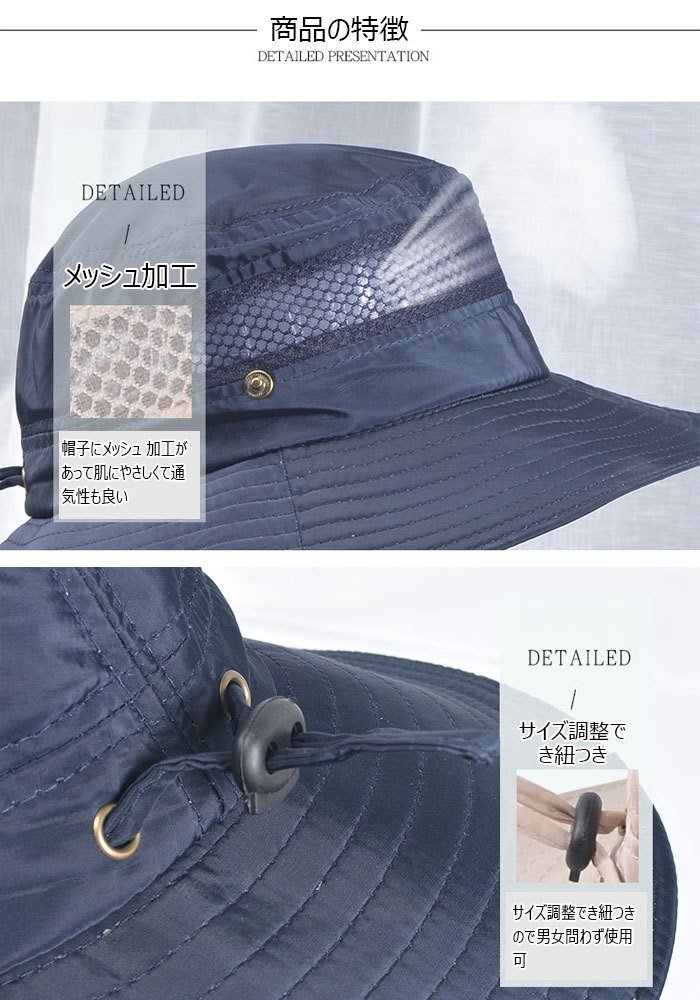 サファリハット UPF50+ UVカット率99% 2WAY 日焼け防止 ハット ひも付き 大きいサイズ 釣り 散歩 登山 男女兼用☆カラー/多色選択/1点 [浏览原始页面]