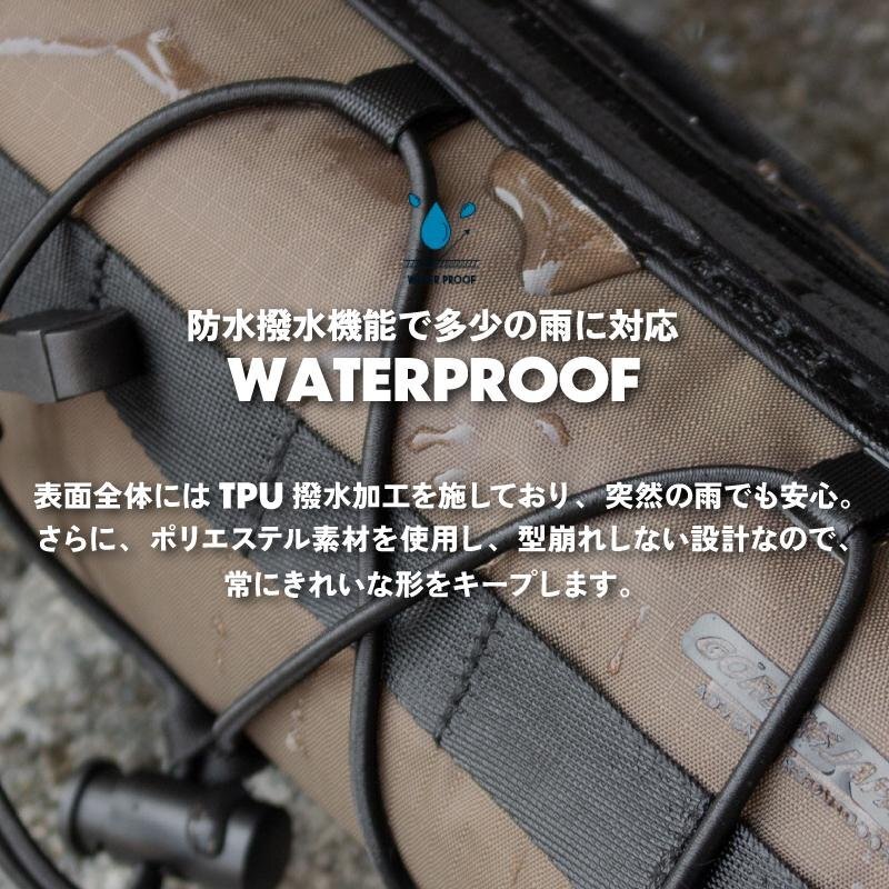 ファッション性と耐久性を兼ね備えたこのバッグは、TPU防水撥水加工により雨や汚れに強く、油や水も簡単に拭き取れます。