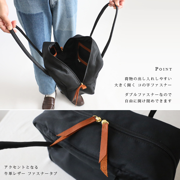 開口部にはダブルファスナーを使用し、