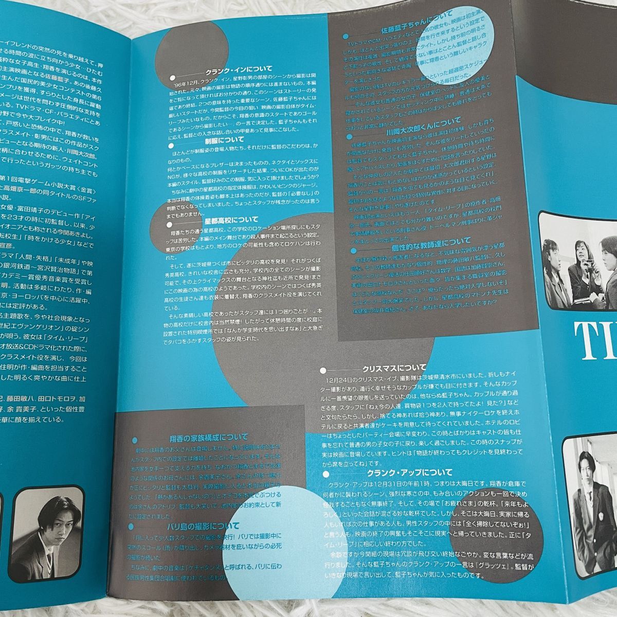 【商品説明】 映画「TIME LEAP タイム・リープ」公開時のパンフレットです。 主演は佐藤藍子、川岡大次郎。 1997年公開作品。表紙・裏表紙・中面ともに当時のデザインが残された一冊。 映画紹介、キャスト紹介、監督コメント、制作資料などを収録。 折れや擦れがありますが、通読に問題はありません。 映画資料としても貴重なパンフレットです。