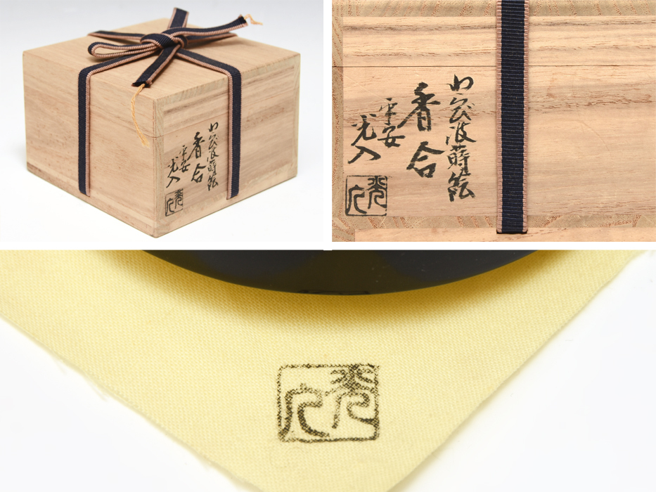 平安光入 (造) わらび波蒔絵 月日貝 香合です。 月日貝の色合いと側面や内側に施されたわらび波蒔絵が美しい一品です。 使用感なくコンディションは良好です。 ※撮影の際に生じた写り込みなどがございます。 ご理解の程よろしくお願い致します。 |