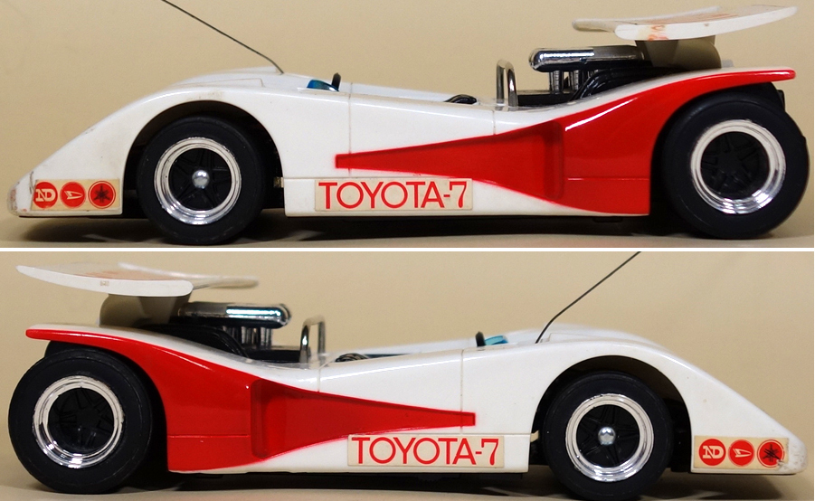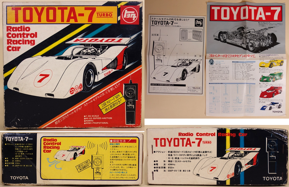 かなり古い物です。箱は汚れや擦れあります。発砲スチロールはかけている箇所もあります。当時の冊子も入っています。製造元は今では聞いた事がないおもちゃメーカーです。多少は使用されているようですので多少の汚れや擦れあります。年代物の割には本体はきれいかと思います。本体の電池入れの金具に錆が出ている箇所もあります。電池はありませんのでご自分でご用意ください。ラジコンカー本体のアンテナが倒れております。中のどこかに支える部分であるのかわかりません。電池をいれて動作確認をしました。ハンドルは一応なんとか反応しますが、かなり反応が遅いですし、絨毯の上ではほとんど曲がりません。また反応しない事もあります。前進ボタンがないのでスイッチオンで自動的に前進かと思いますが前進しません。ただリバースのボタンを押すと行進はします。最近のパワーのあるニッカド電池をいれてためしましたが行進はそれなりにスピードはありました。ラジコンカーとして機能させるには直しが必要です。分かる事は以上です。お取り引き後はいかなる理由がありましても返品は出来ませんしクレームもお受けできません。