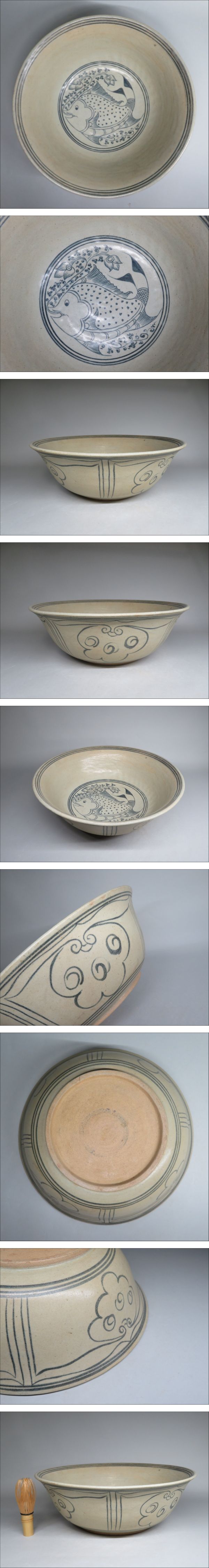| 「都内コレクター所蔵品」ベトナム(越南)時代古陶 安南染付魚紋大鉢 安南焼 東南アジア古陶器 | |||