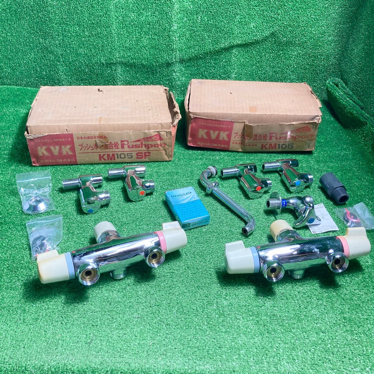 | 商品 | KVK プッシュポン混合栓 「KM105/KM105SF」 ■壁付2ハンドル 本体外寸 (幅220×奥行60×高さ120mm) ☆計2セット ☆新品☆ |