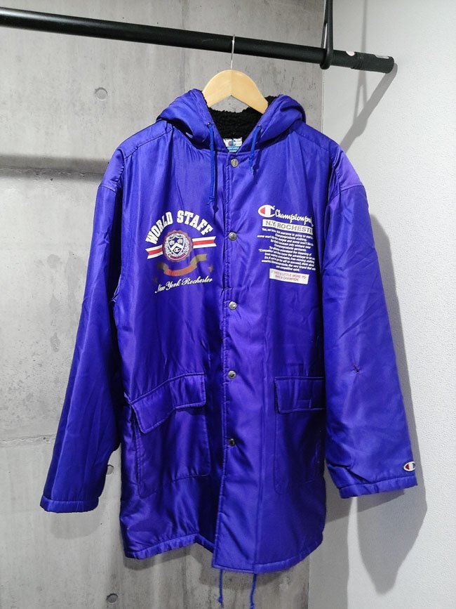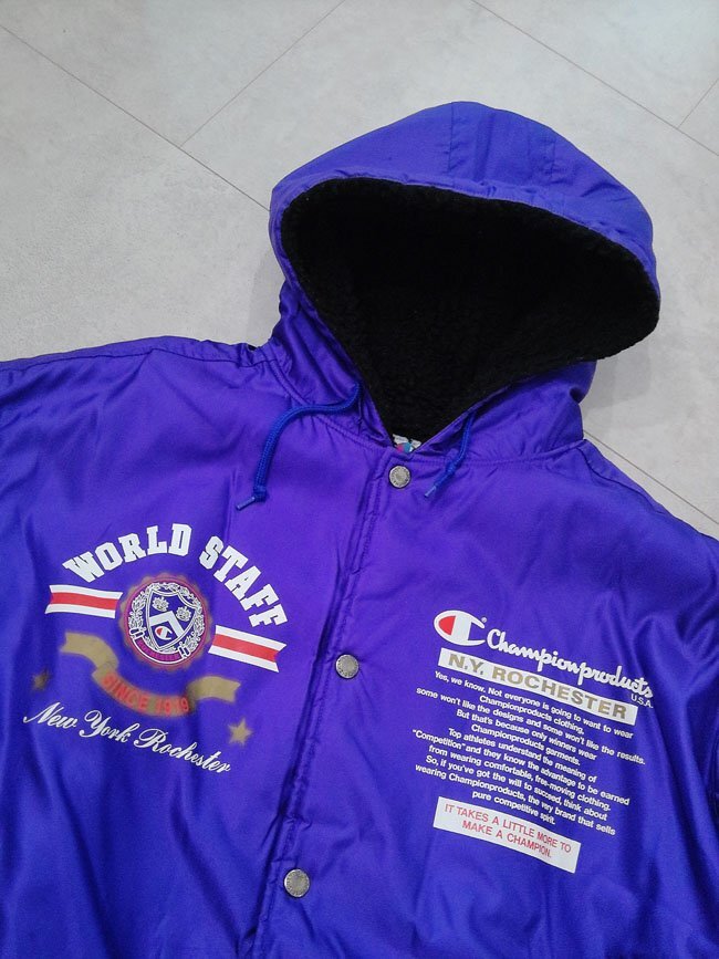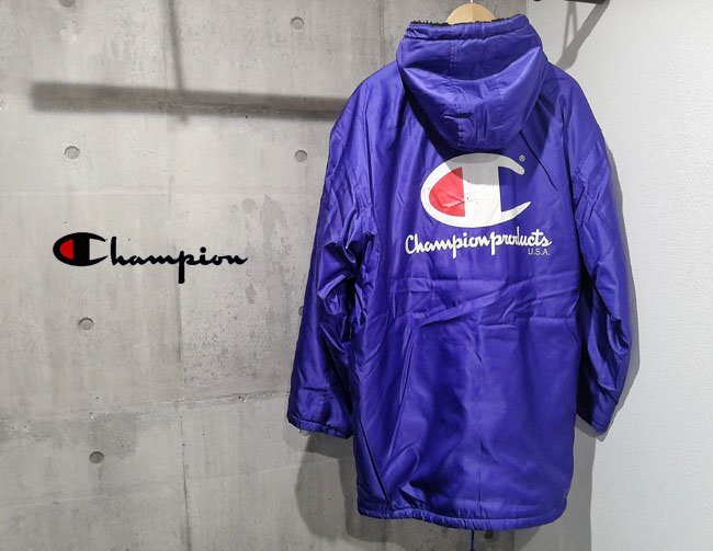 | 商品の詳細 | 商品名 | Champion チャンピオン ロゴプリント 裏ボアフリース ベンチコート L/フード付き ブルゾン/ジャケット/メンズ/青紫/スポーツ観戦 4791 |