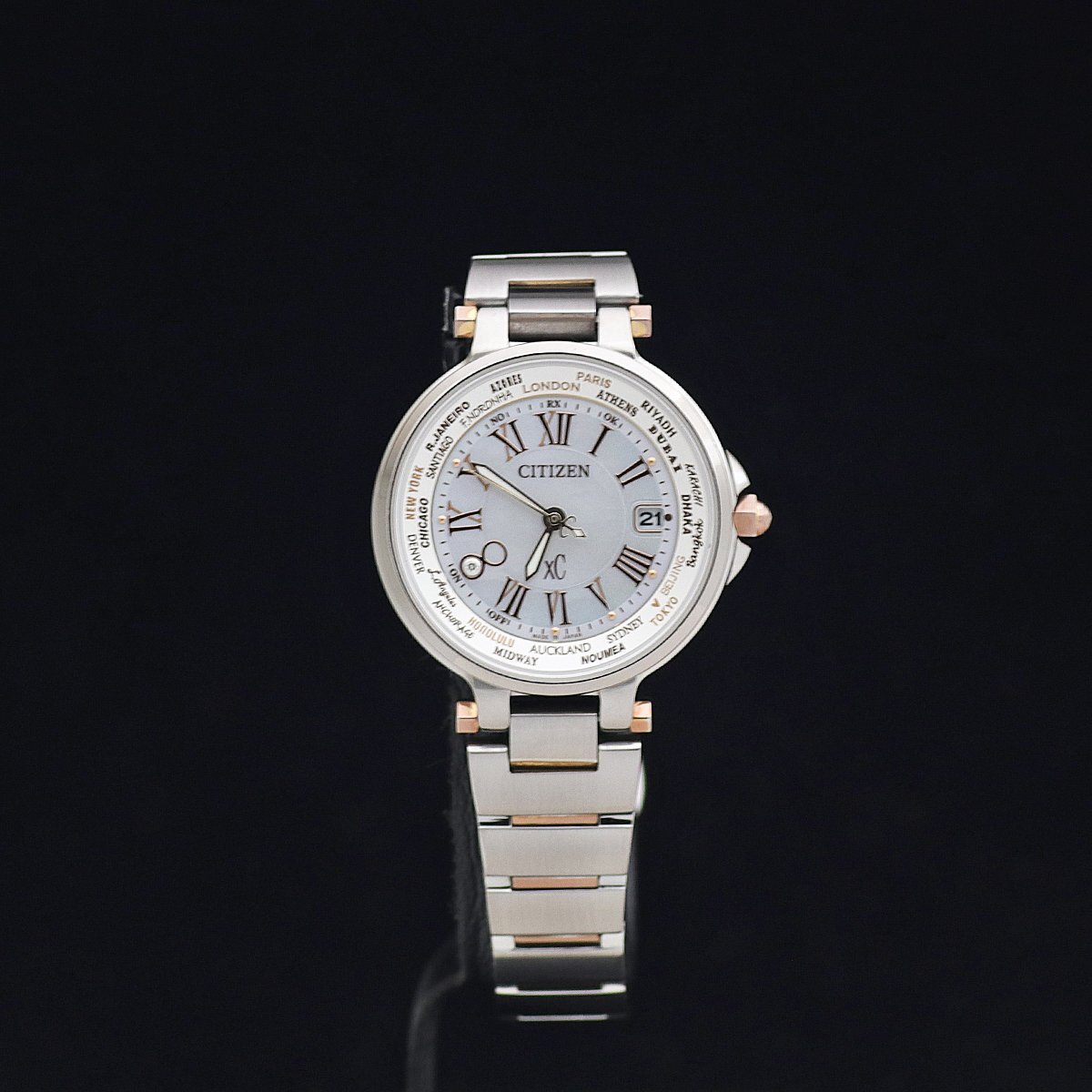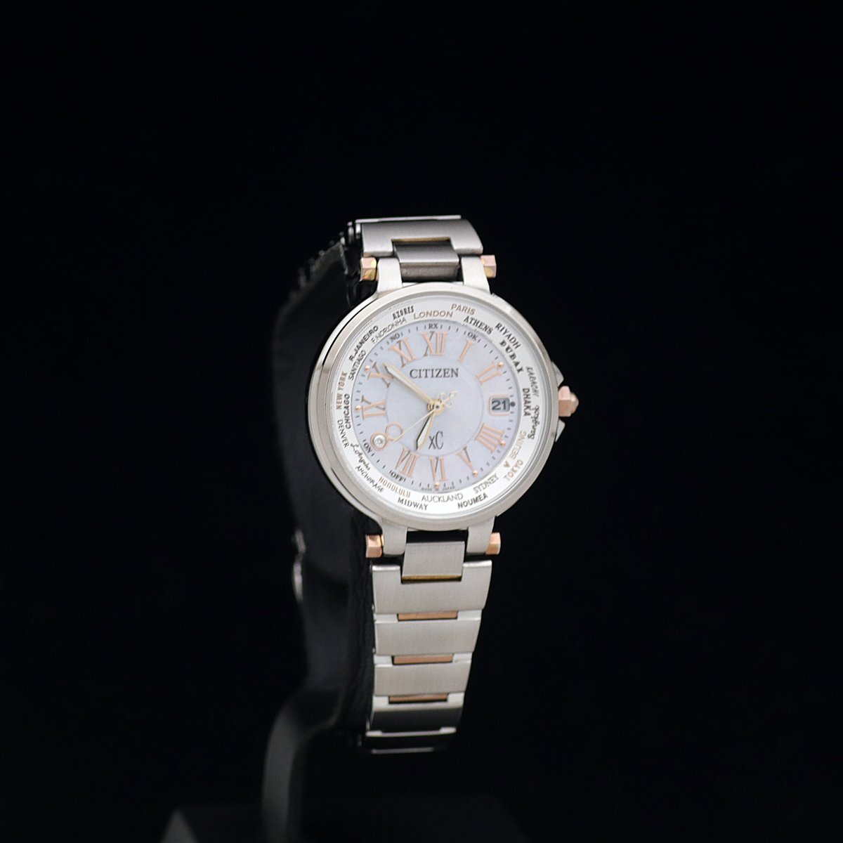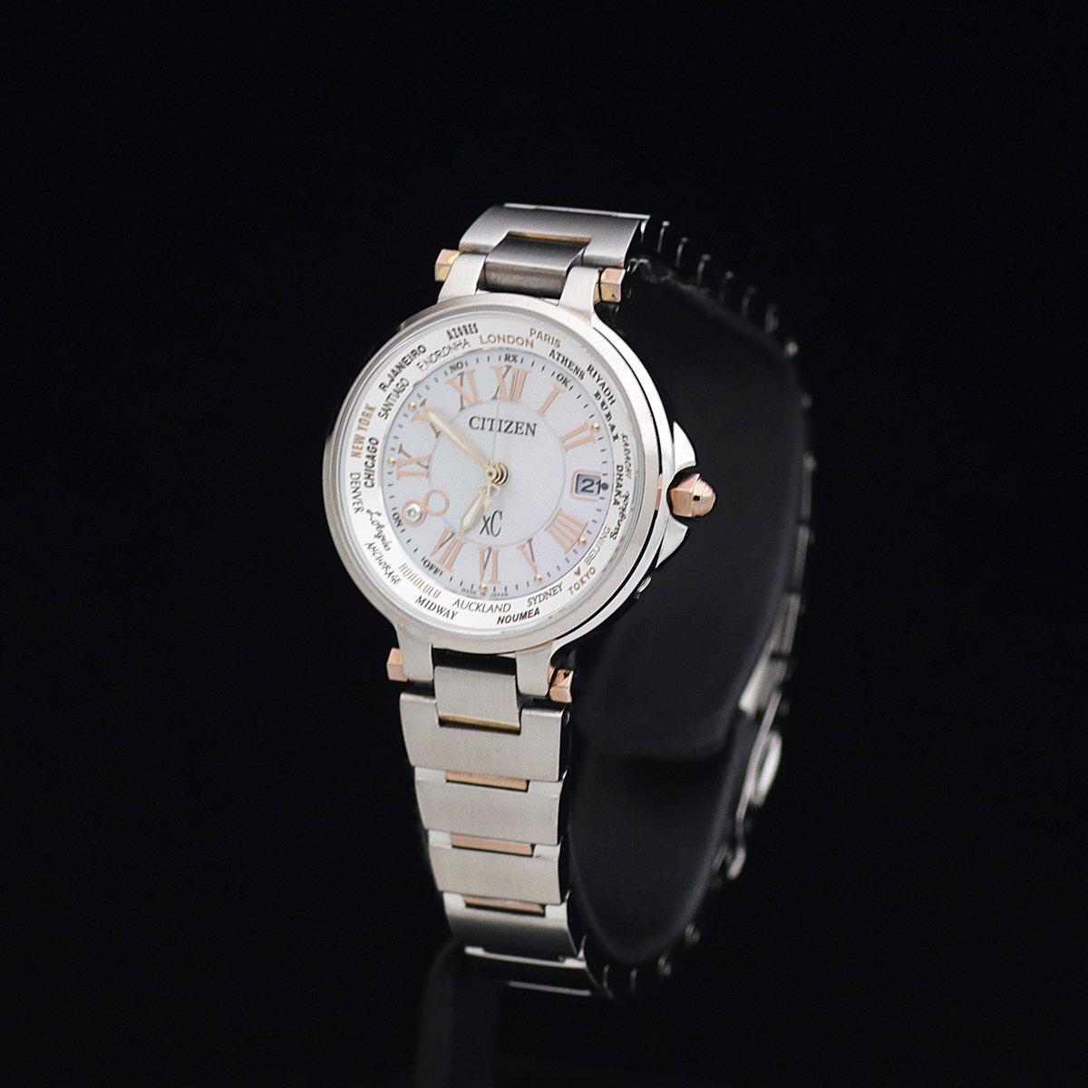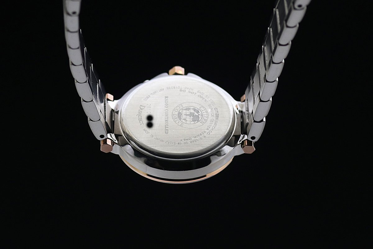 | 商品説明 | ![]() ![]() ![]() ●CITIZEN シチズン XC クロスシー ハッピーフライト 1500本限定モデル 電波ソーラー ●Ref:EC1014-72W ●Cal:H240 ●シリアル:2810***** ●レディース/電波ソーラー ●ケース/ブレス素材:SS・PG色メッキ/SS・PG色メッキ ●文字盤色:シェル/1Pダイヤ ●ベゼル径:29mm ●ケース径:32mm(リューズ込み) ●ケース厚:7.8mm ●腕周り:17cm(余りコマ無し) ●重さ:58.6g ●定価:\84,000-(税込) ●付属品:保証書(2013年12月購入)、取説 ●ランク:A 【ランク詳細】 S 新品、未使用 SA 極上美品(細かな傷も少なく、とても綺麗) A 美品(細かな傷はあるが、目立つ傷がない) B USED(細かな傷はあるが、目立つ傷が少ない) C USED(細かな傷があり、目立つ傷が多少ある) J ジャンク(動作不良、一部動作不良、動作未確認) ●薄い傷、裏蓋に薄い傷はありますが、目立った傷はなく美品です。 ●ガラスは無傷です。針、文字盤ともにきれいです。 ●GPに剥げはありません。 ●動作確認済みで、正常に動作します。 ●詳細は 販売店サイトをご覧ください。 ●2013年冬の1500本限定モデルです。 ●新品、未使用品、かなりきれいで手を加える必要がないと判断した商品以外は、弊社もしくは専門の業者にて、専用の器材を使って洗浄、研磨等を行い、出来るだけきれいな状態でお届けできるよう心がけております。また梱包の際には除菌シートにて清掃を行った上で発送させていただきます。(一部革素材は行いません) ●ご質問、ご不明点は「m1t2m3_2006@sun.cims.jp」までご連絡ください。 | ||||||||||||||||