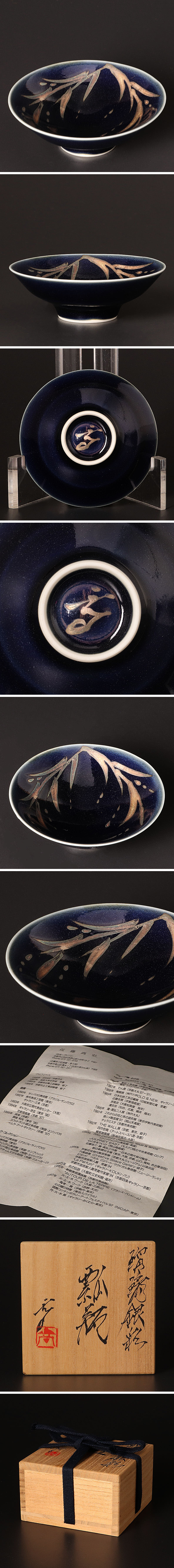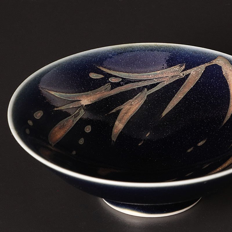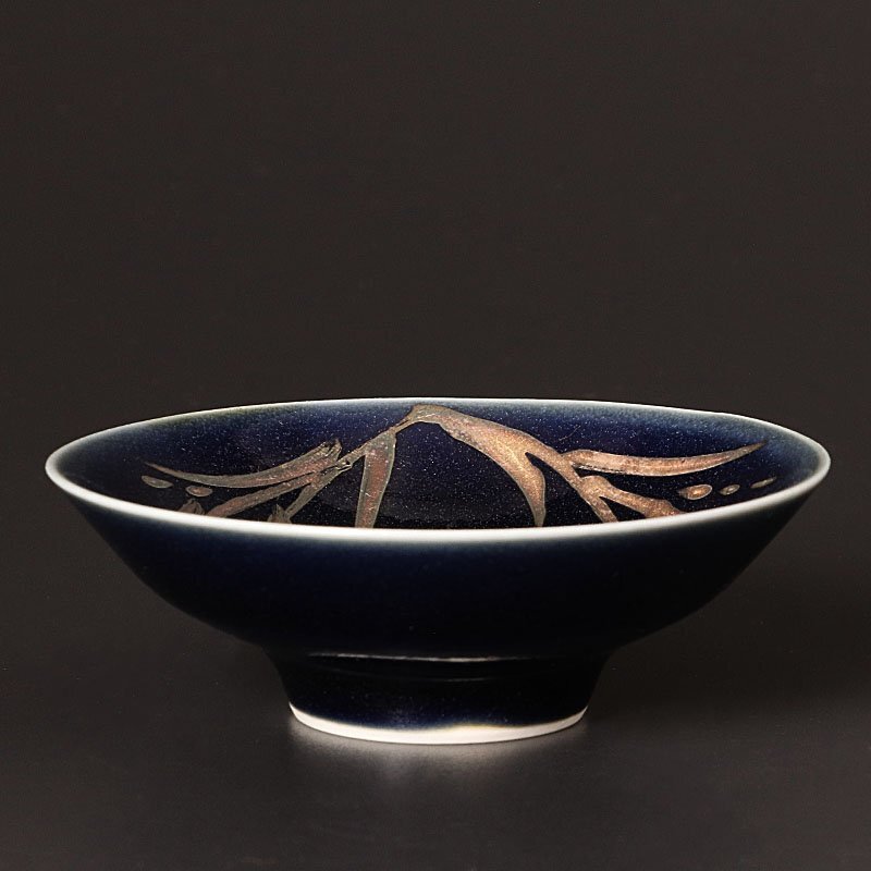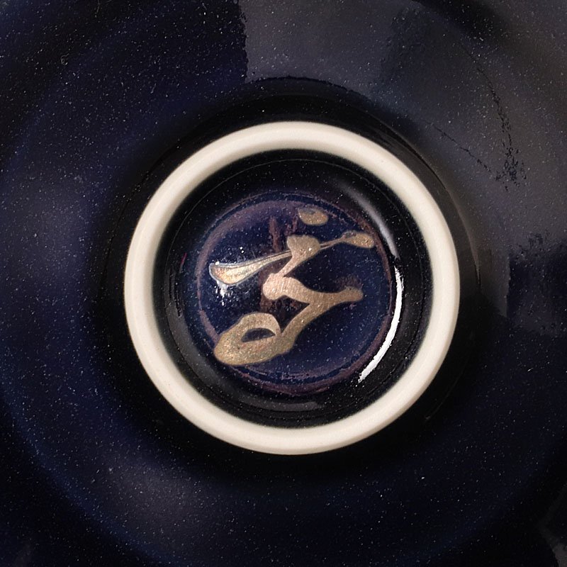瑠璃釉の地に施された繊細な金彩の模様が美しく上品な盃です。 ★商品は近藤高弘の作品である事を保証致します。 |
