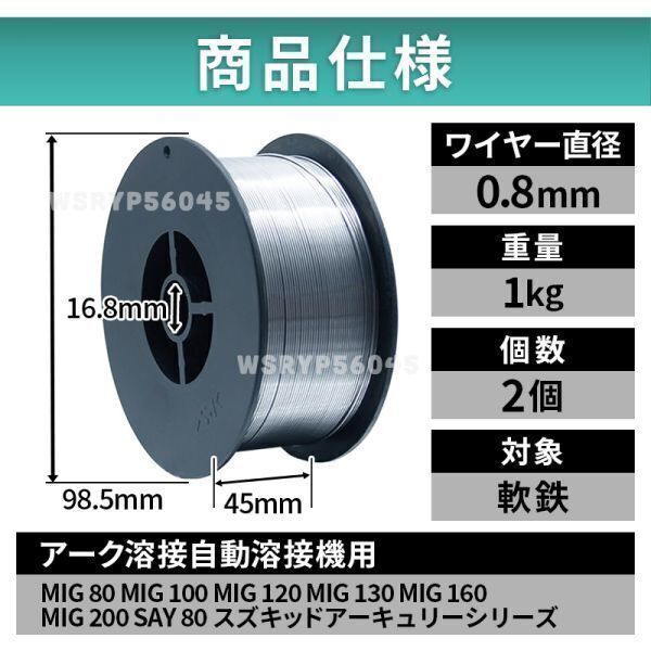 半自動溶接機用 高品質 フラックス入りノンガスワイヤーです。 セルフシールド アーク溶接 半自動溶接機用 軟鋼用 MIG 80 MIG100 MIG120 MIG130 MIG160 MIG200 SAY-80 スズキッド アーキュリーシリーズ フラックス入り・シールドガス不要。 フラックスがアーク熱に反応し、シールドガスを発生。 溶接部を空気中の酸素や窒素から保護します。 ①溶着速度が早い! ②スラグが溶接金属全面を覆い、ビード形状・外観が平坦で美しい! ③スラグの剥離性も良好! ④風に強く、屋外での現場溶接作業に最適。 溶接機に付属していたワイヤが残り少なくなってきた方や、 突然のワイヤー切れで困らないようスペアワイヤーを揃えたい方におすすめです。 ※こちらは2個セットになります。 1個落札すると「2個セット」が1個で合計2個分 2個落札すると「2個セット」が2個で合計4個分 となります。 落札数量にご注意ください。 ★★まとめ買いでさらにお得!★★ そのほかのセットはこちらから ■商品仕様■ 内容品:ガスレス ワイヤー(ガス不要)2個 ワイヤー:直径0.8mm 重量:1kg (合計2kg) サイズ:取付部分16.8mm、外形98.5mm、高さ45mm 溶接対象物:軟鉄 |
