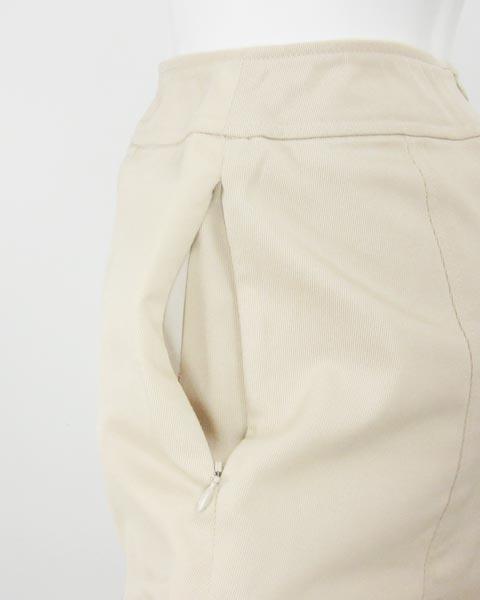 | 控え目なAラインシルエットがお上品なスカート。程よいハリとストレッチの効いたコットンブレンドで、はき心地の良さも魅力です。飽きのこないシンプルなデザインですので、長い間お使い頂けますよ。タグにSP印がございます。 |