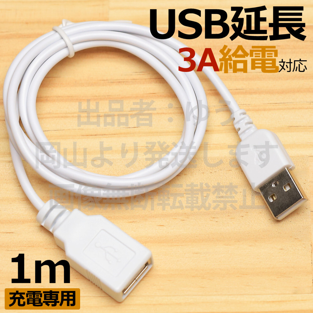大電流対応延長用USBケーブル 1m 3アンペア 急速充電やUSBヒーターに 充電専用のUSB延長ケーブルです。 長さは1m ■製品仕様■ | |||