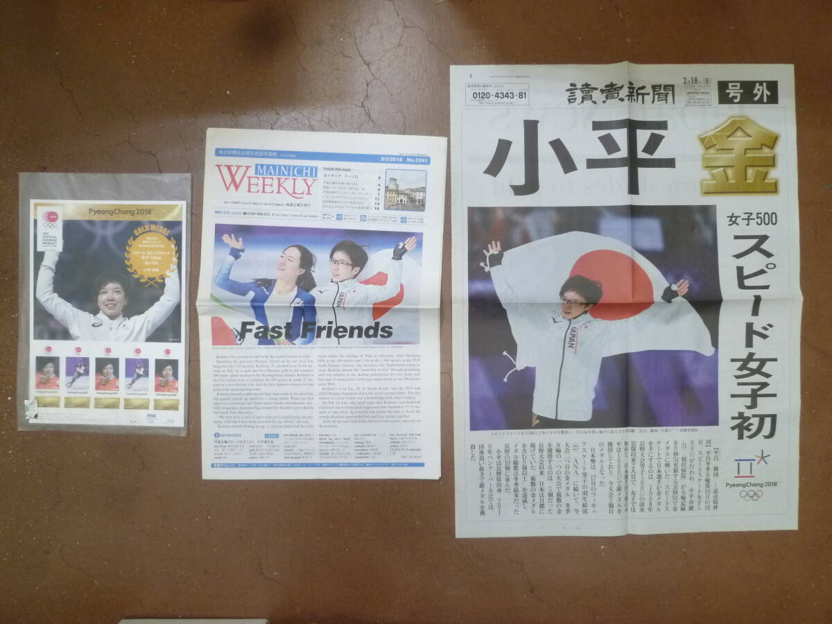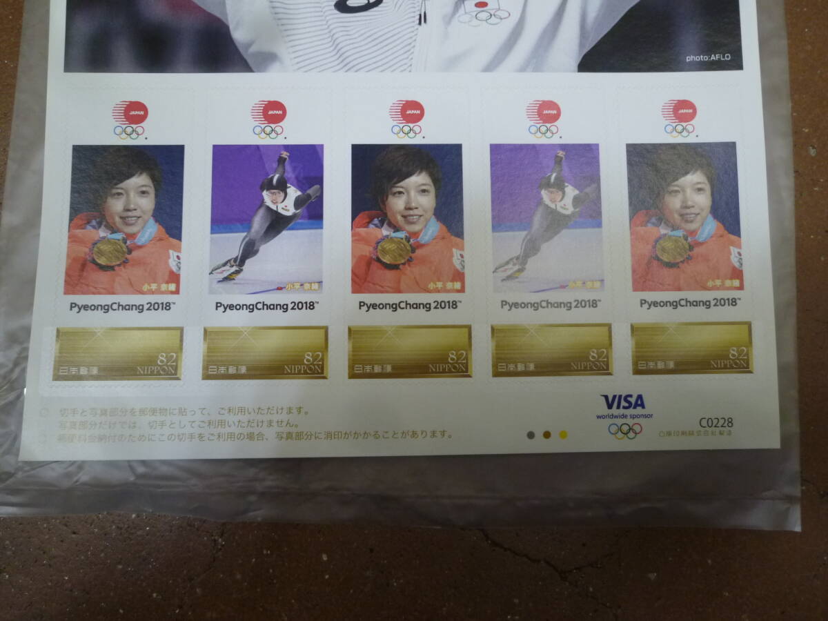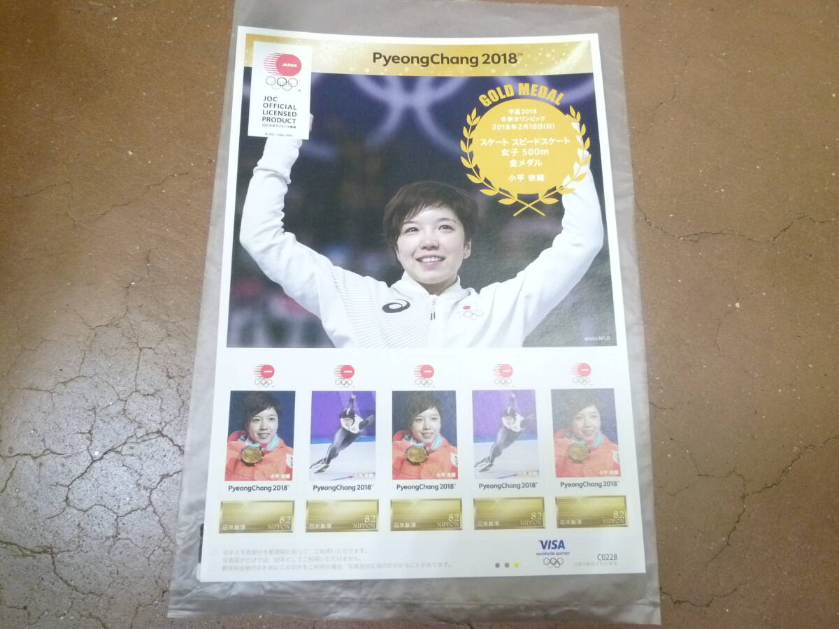 | A42132 【保管品】 平昌 2018 冬季オリンピック スケート スピードスケート女子 500m 金メダル 小平奈緒 切手シート 82円×5 +号外 他 | ||