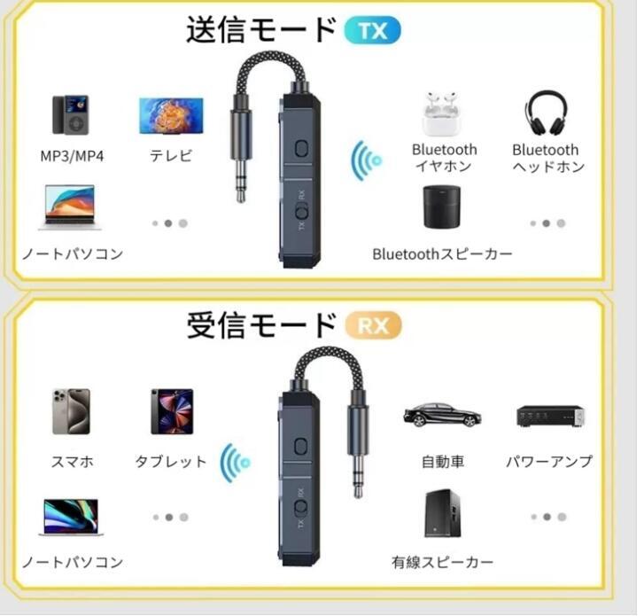 Bluetooth 5.4 トランスミッター & レシーバー 2-in-1 ブルートゥース 受信機&送信機 ワイヤレス アダプタ 3.5mmAux Bluetooth オーディオトランスミッター/レシーバー ハンズフリー通話 ナビ 音楽再生 低遅延 車載/テレビ/ホーム 充電しながら使用可 日本語説明書付き