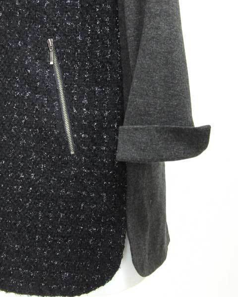 | ファンシー異素材チュニック♪異色素材の組合せがきれいで、シルエットがとても美しいアイテムですね。リッチなラメファンシーの素材感が高級感たっぷりで、ベーシックにも着こなせる万能アイテムです。 |